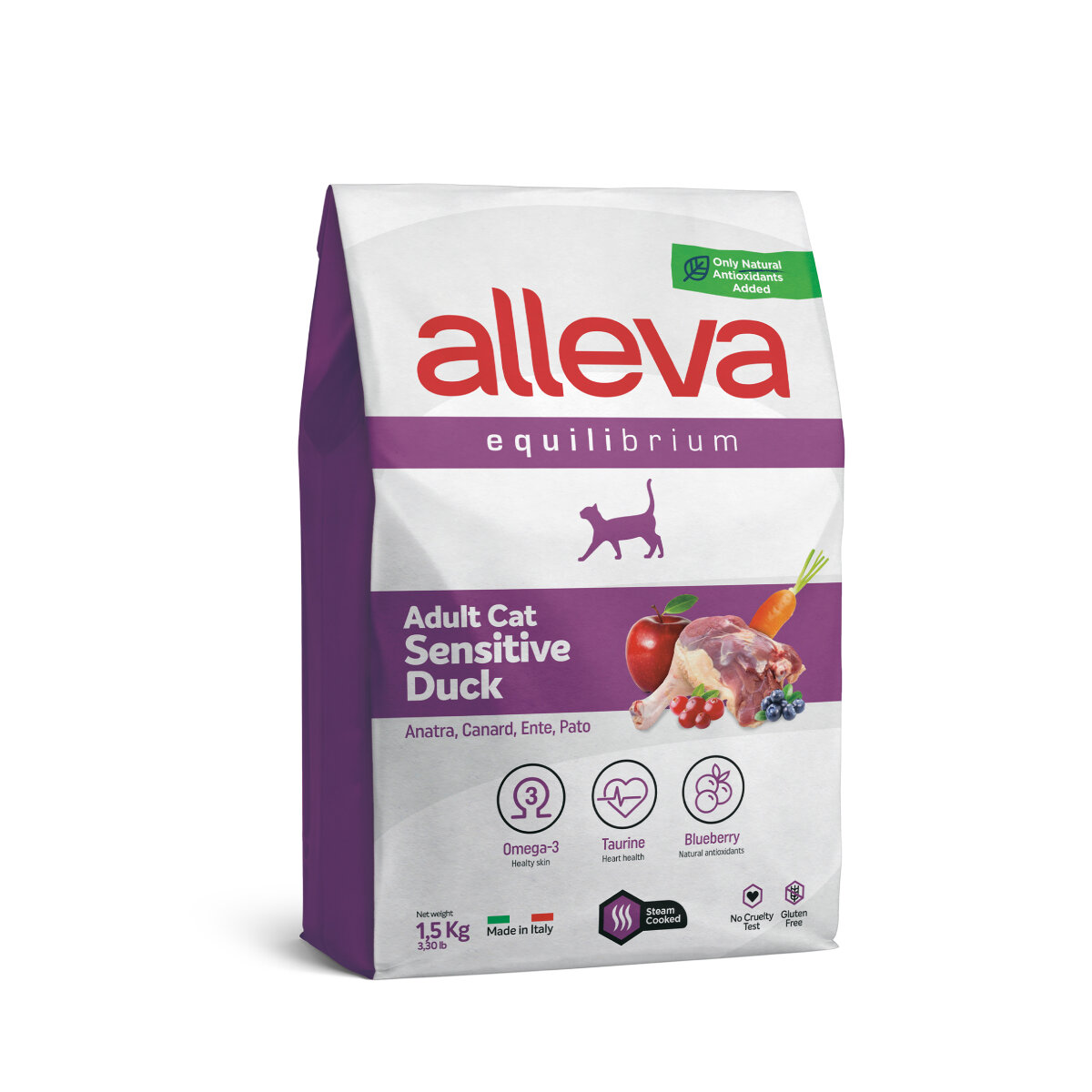 ALLEVA Полнорационный корм SENSITIVE для взрослых кошек с уткой. 1,5 кг. х 3 шт.