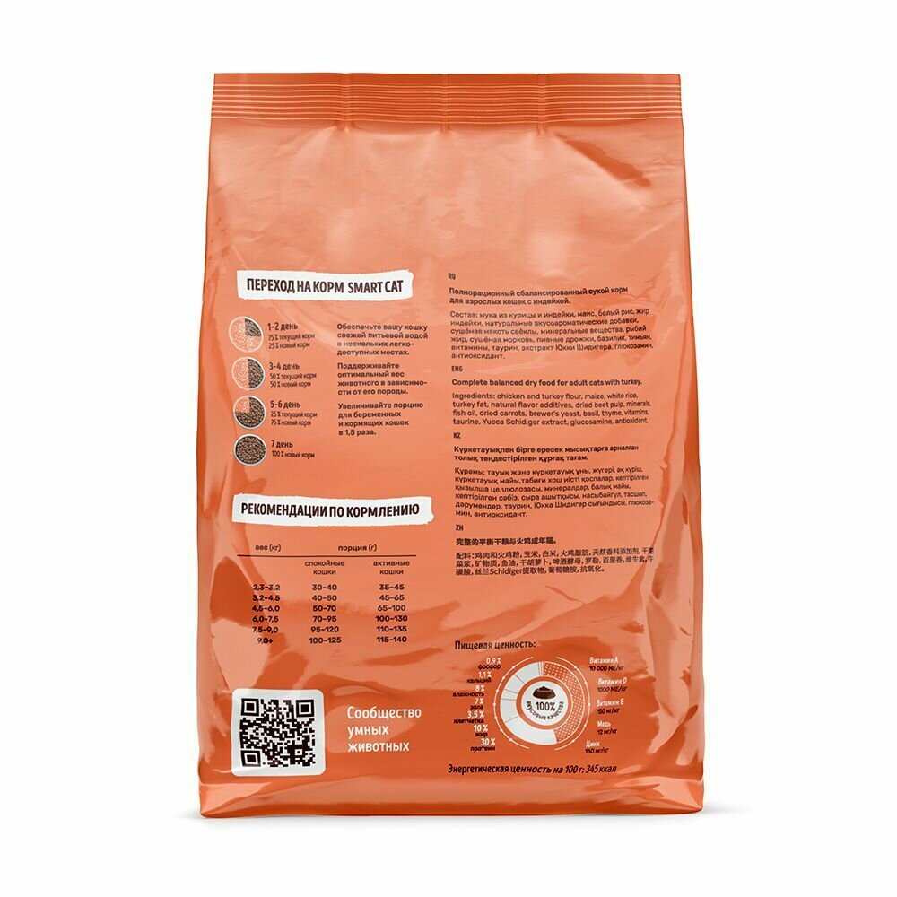 Купить Smart Cat (Смарт Кэт) сухой корм для взрослых кошек с индейкой, 5кг