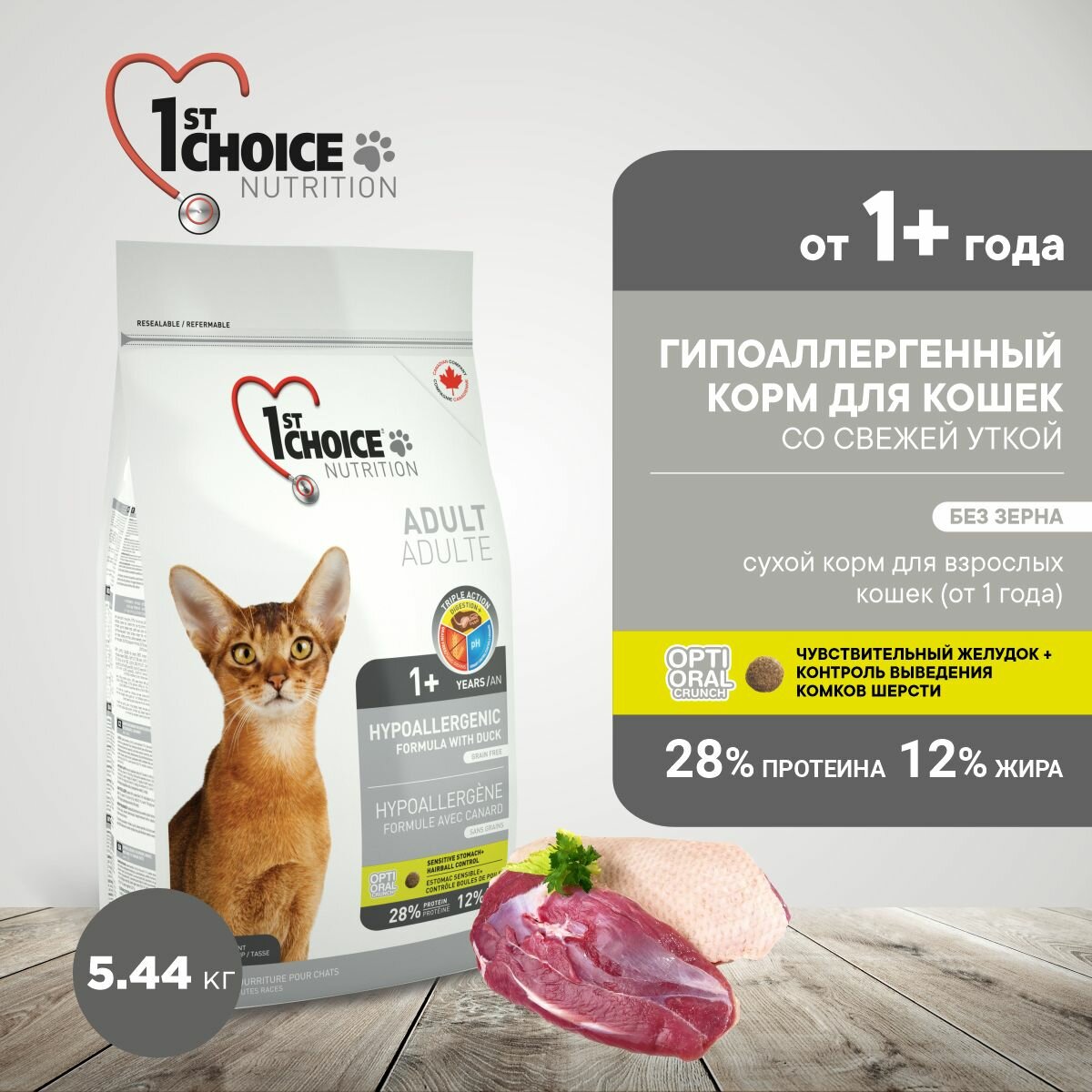 Сухой корм для кошек 1st Choice Adult, гипоаллергенный, с уткой 5.44 кг