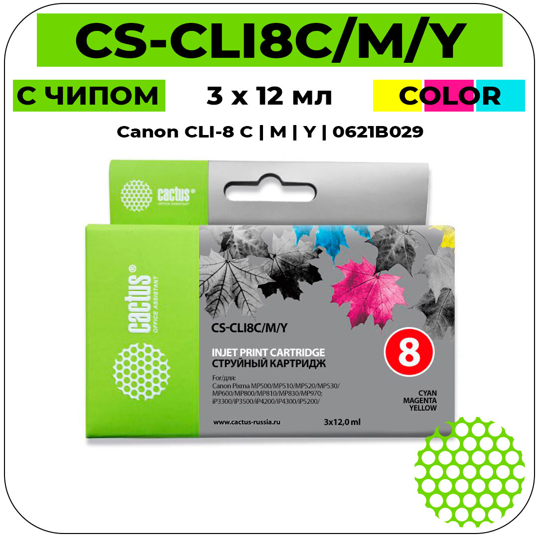 Картридж струйный Cactus CS-CLI8C/M/Y совместимый (Canon CLI-8 C - M - Y - 0621B029) набор цветной 420 стр