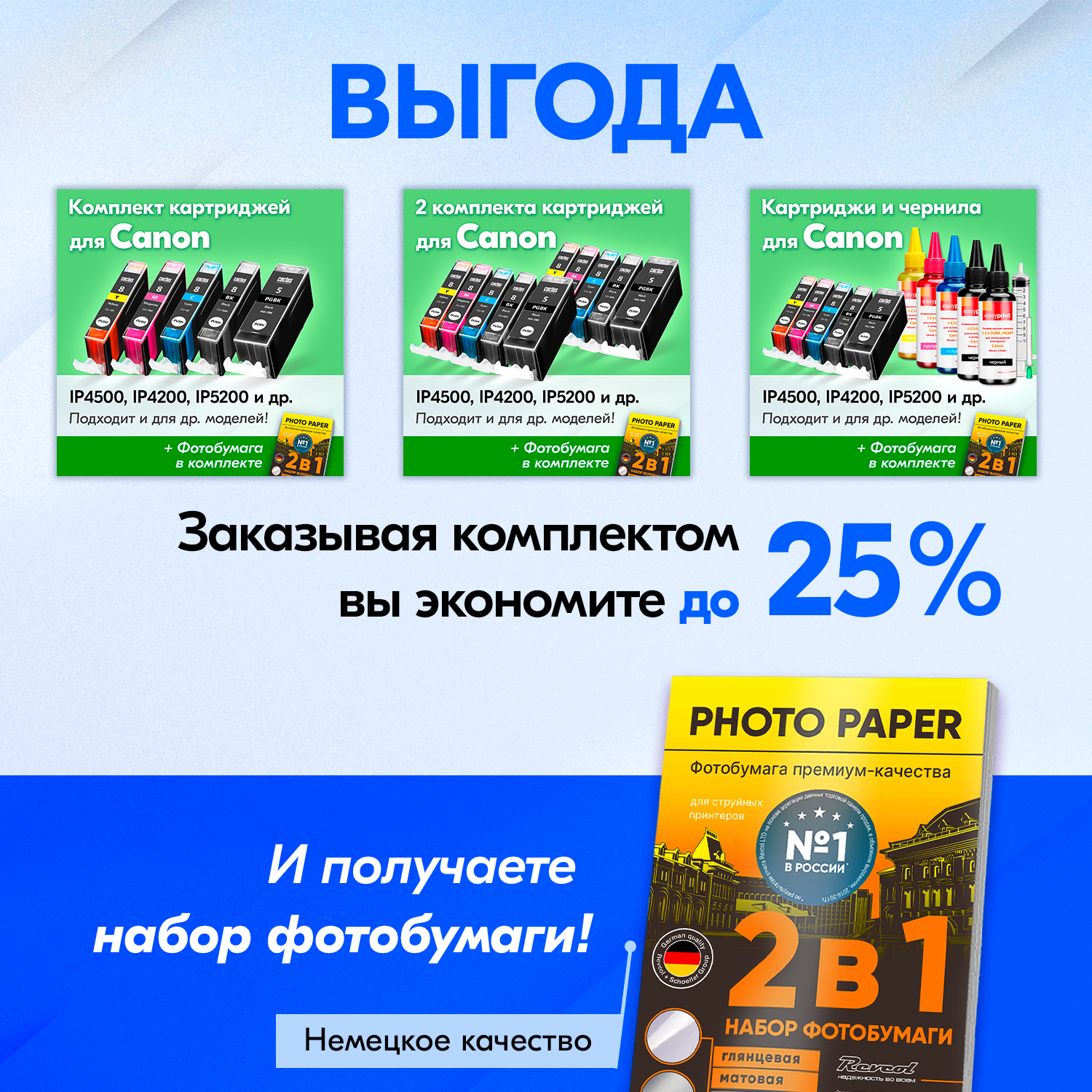 | Плюсы: | Совместим с принтером Canon Mp500. |