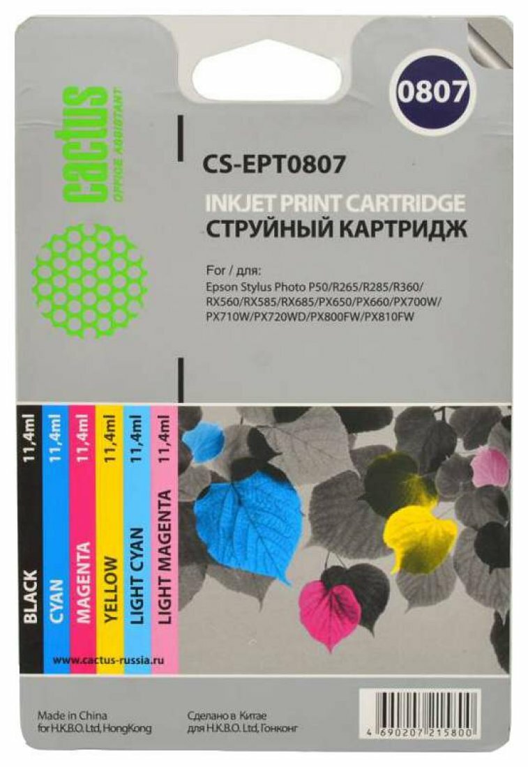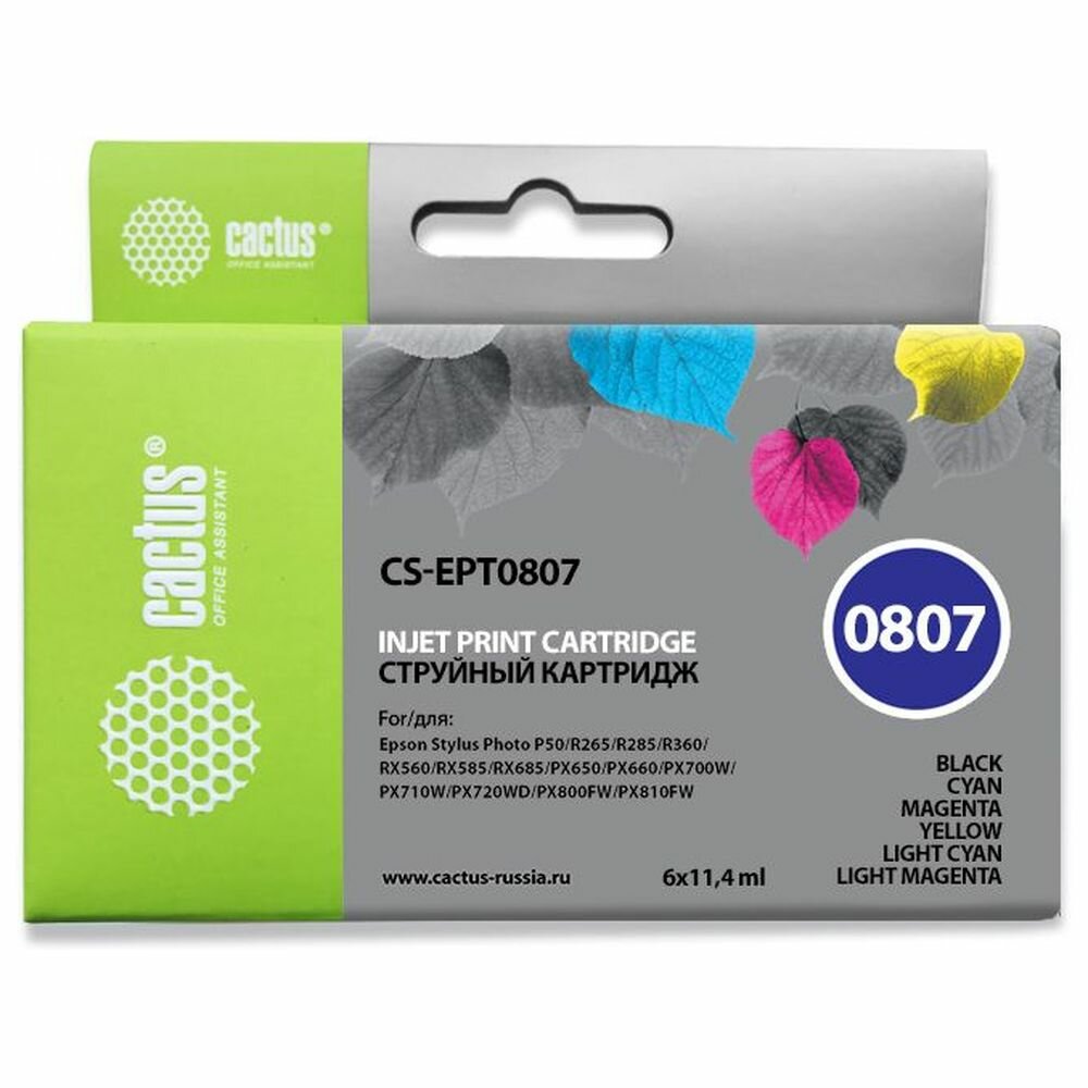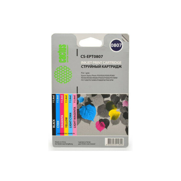 Картридж CACTUS CS-EPT0807, черный / желтый / голубой / пурпурный / светло-голубой / светло-пурпурный / CS-EPT0807