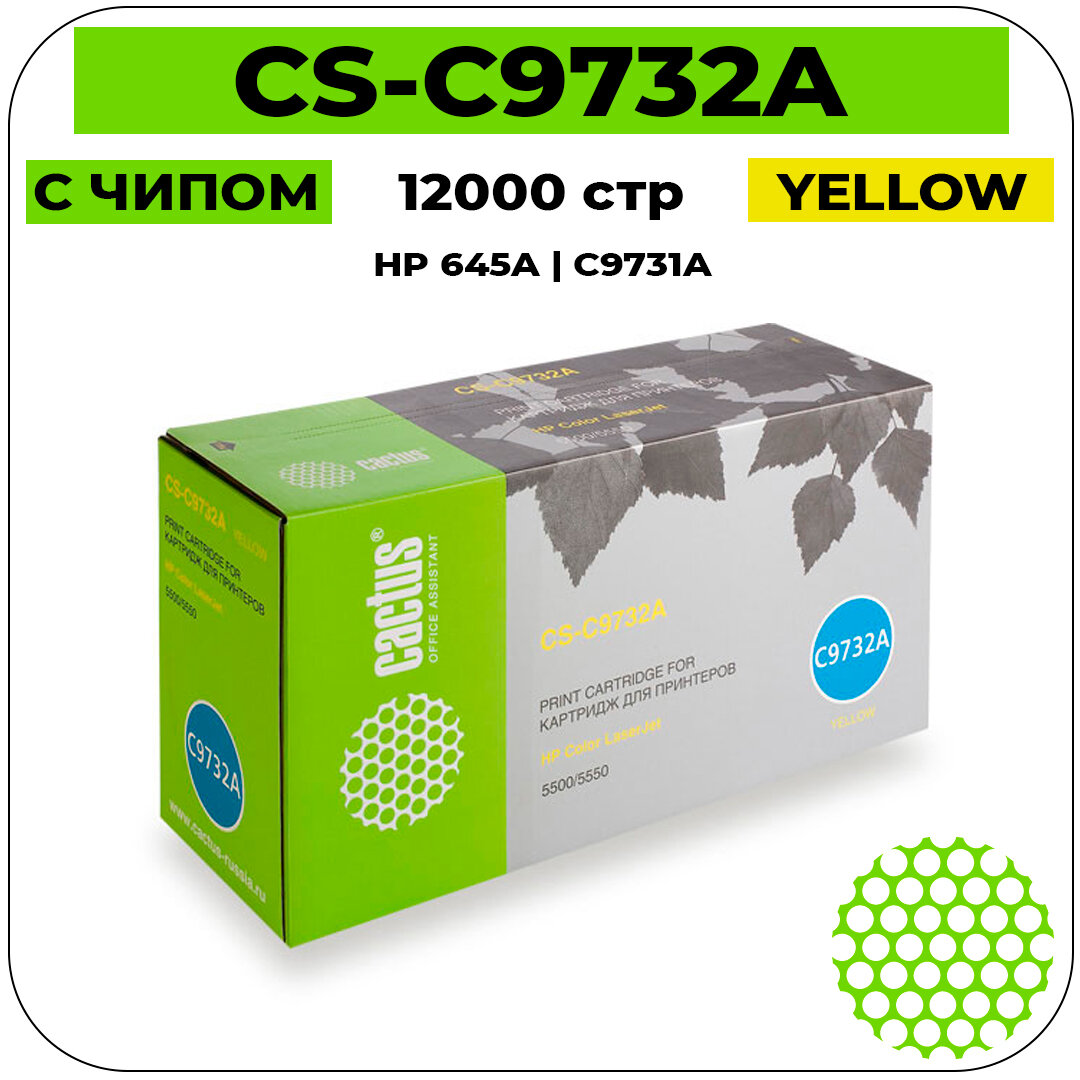 Картридж лазерный Cactus CS-C9732A желтый (12000стр.) для HP CLJ 5500/5550 CS-C9732A