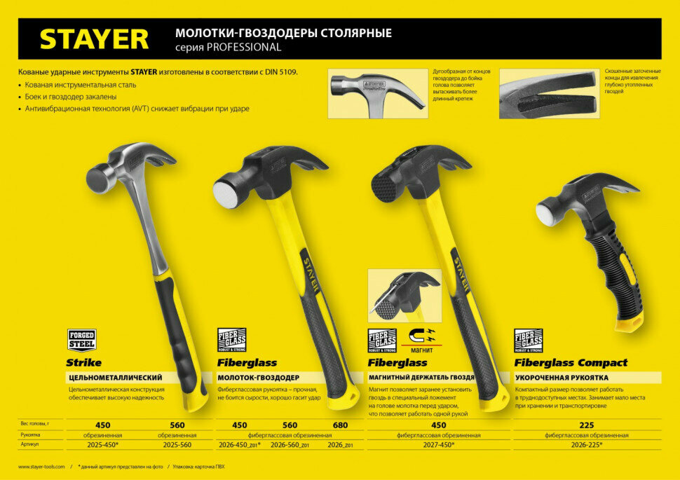 Ниже Вы можете прочитать отзывы на STAYER Молоток-гвоздодер STAYER "PROFESSIONAL" цельнометаллический с двухкомпонентной рукояткой, 560г, ( 2025-560 ), ознакомится с подробными характеристиками, посмотреть интересные обзоры и фотографии на STAYER Молоток-гвоздодер STAYER "PROFESSIONAL" цельнометаллический с двухкомпонентной рукояткой, 560г, ( 2025-560 ).