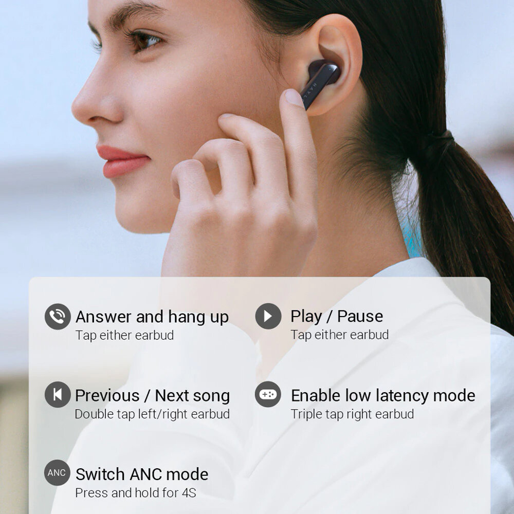 | Дополнительная информация | оснащен тремя микрофонами на каждом наушнике; совместимость с системами Android / iOS; поддерживаемые протоколы A2DP / AVRCP / HFP; время работы 40 ч ANC OFF (наушники 9 ч +зарядный кейс 31 ч), 22 ч ANC ON (наушники 5 ч + зарядный кейс 17 ч) |