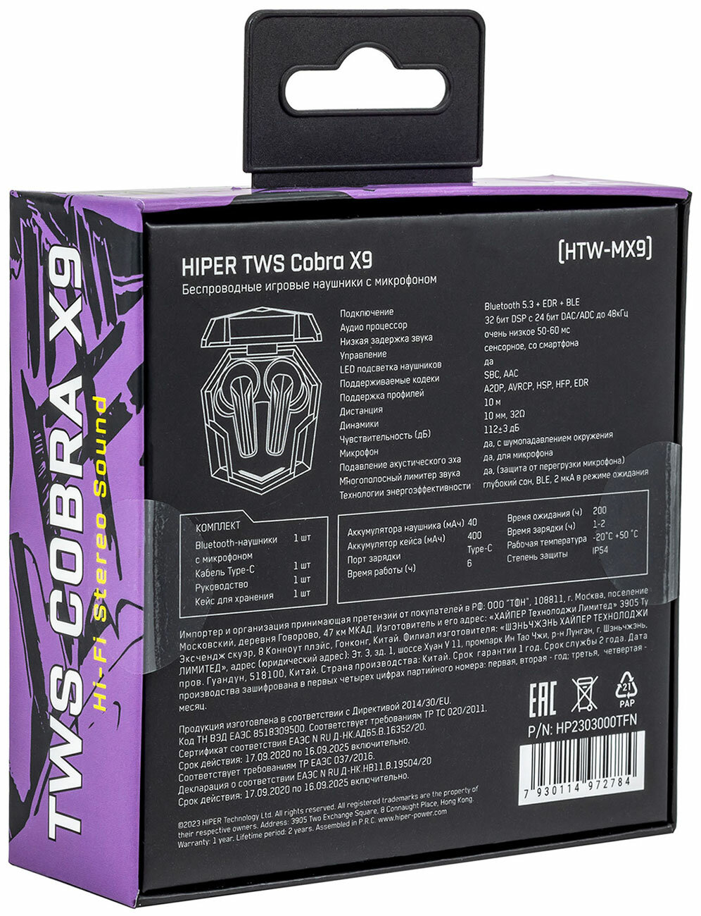 Наушники TWS игровые HIPER COBRA X9 (HTW-MX9)