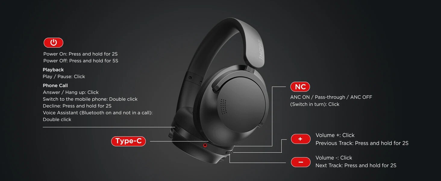 Беспроводные наушники 1MORE "Sonoflow Pro", ANC, накладные, с шумоподавлением