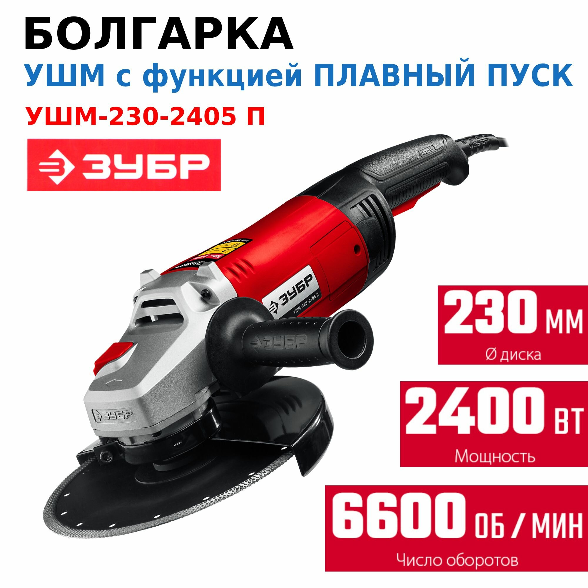 ЗУБР 2600 Вт, d230 мм, УШМ, УШМ-П230-2600 П