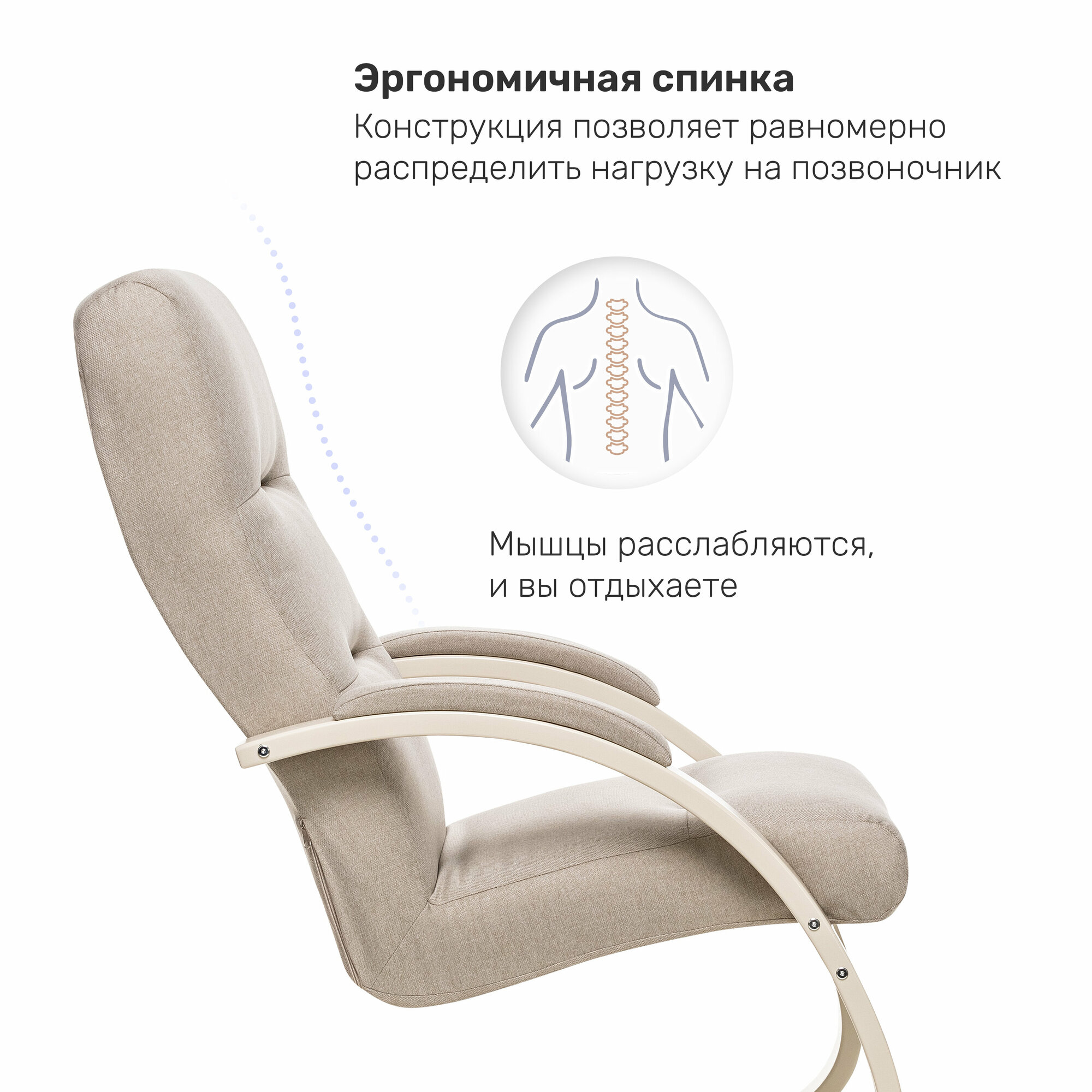 Кресло качалка, кресло для отдыха Милано, Слоновая кость, рогожка Malmo 95
