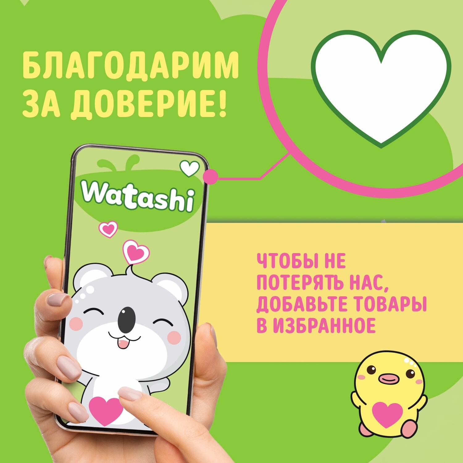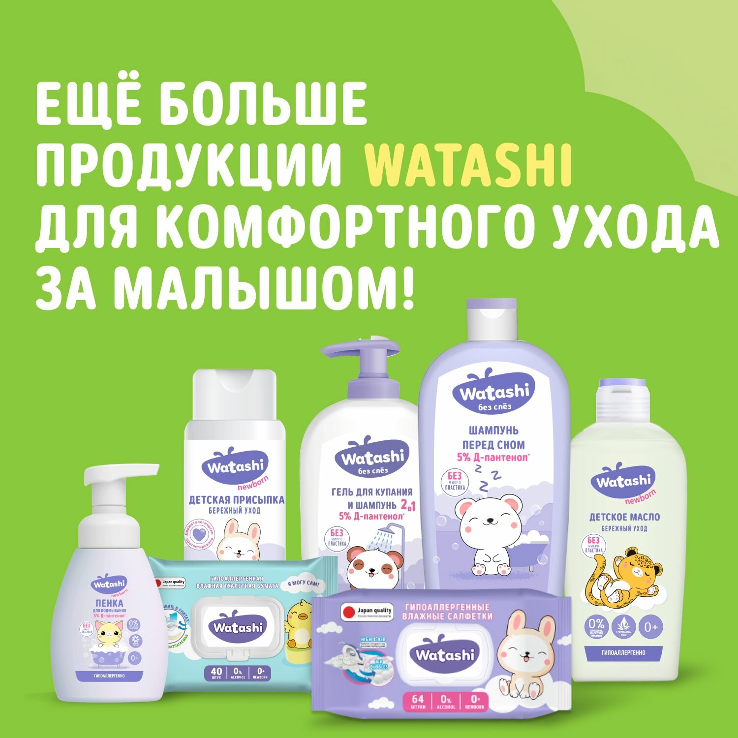 WATASHI Подгузники одноразовые для детей 4/L 7-14 кг 46шт