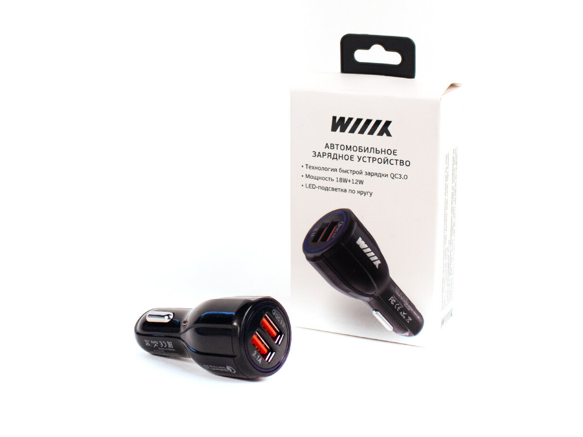 Зарядное устройство Wiiix Автомобильное 3A+2.4A QC универсальное черный