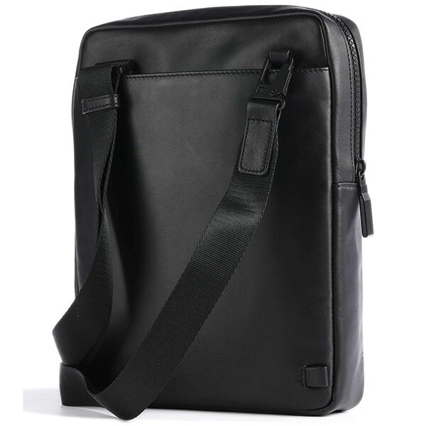 Сумка мессенджер PIQUADRO классическая, натуральная кожа, внешний карман, отделение для ноутбука, черный