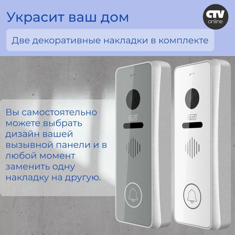 Вызывная панель для видеодомофонов CTV-D4001FHD 2МП, 1080p, угол обзора 115гр по горизонтали, ИК подсветка, 2 декоративные накладки (цвет шампань)
