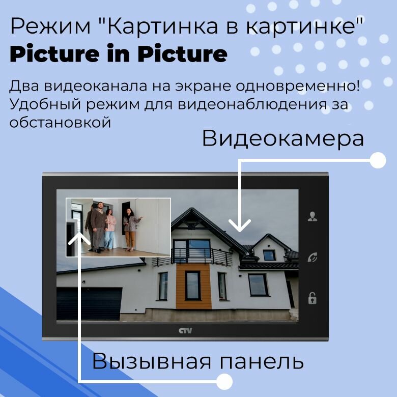 СохранитьCTV-DP4105AHD (Черный) Комплект видеодомофона для квартиры, поддержка Full HD, IPS дисплей 10" 1024x600, угол обзора 115 градусов, с записью видео по детекции движения, автоответчик, HOOK интересное: