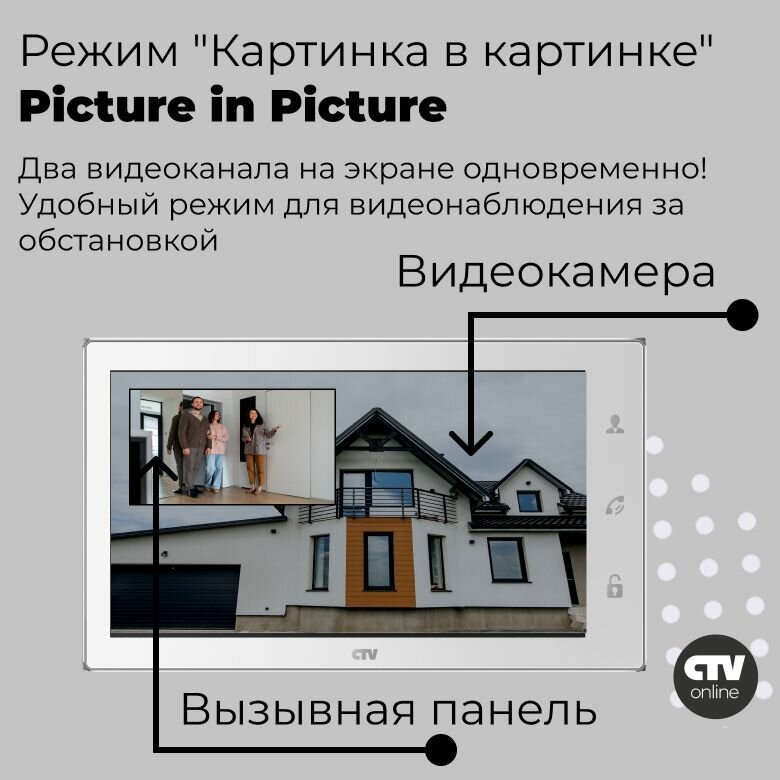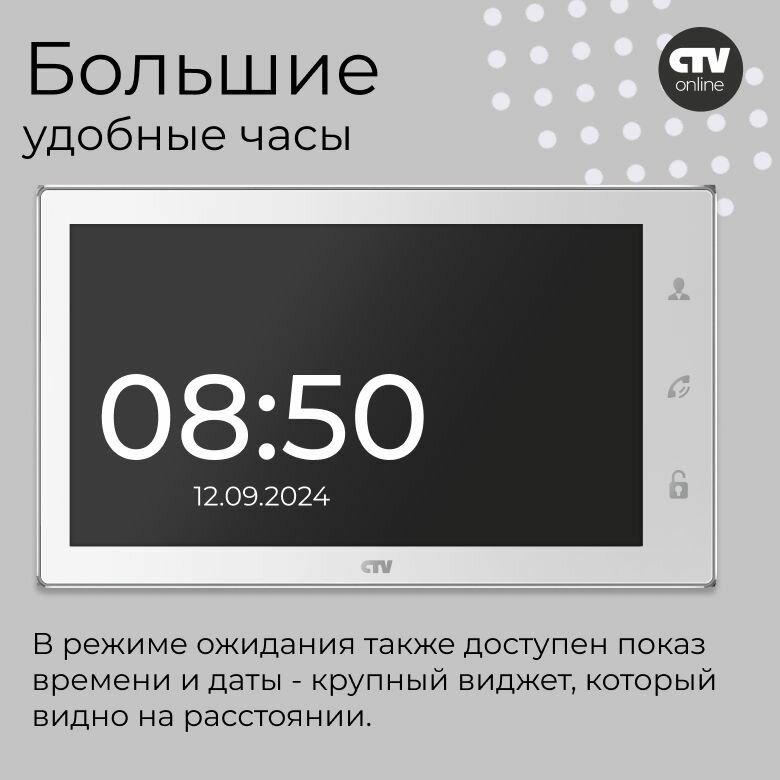 СохранитьCTV-DP4106AHD (Белый) Комплект видеодомофона для квартиры, поддержка Full HD, Сенсорный IPS дисплей 10" 1024x600, угол обзора 115 градусов, с записью видео по детекции движения, автоответчик, HOOK интересное: