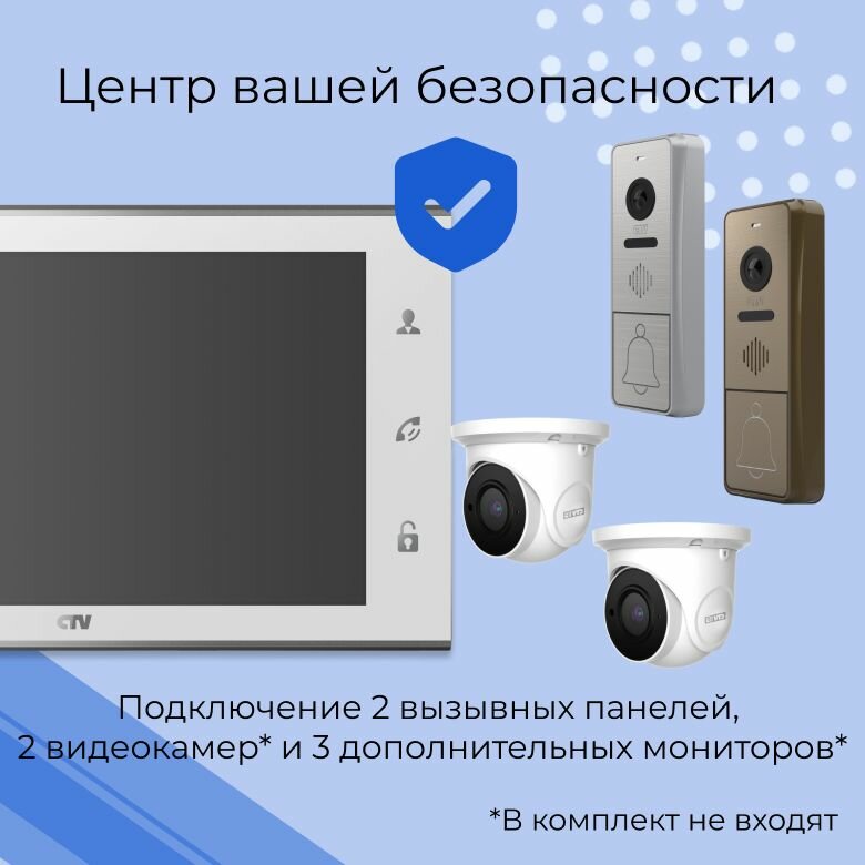 Ниже Вы можете прочитать отзывы на CTV-DP4105AHD (Белый) Комплект видеодомофона для квартиры, поддержка Full HD, IPS дисплей 10" 1024x600, угол обзора 115 градусов, с записью видео по детекции движения, автоответчик, HOOK, ознакомится с подробными характеристиками, посмотреть интересные обзоры и фотографии на CTV-DP4105AHD (Белый) Комплект видеодомофона для квартиры, поддержка Full HD, IPS дисплей 10" 1024x600, угол обзора 115 градусов, с записью видео по детекции движения, автоответчик, HOOK.