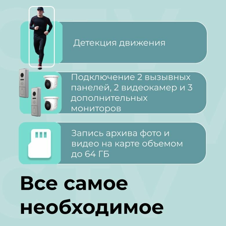 СохранитьCTV-DP4706AHD (Белый) Комплект видеодомофона для квартиры, поддержка Full HD, Сенсорный IPS дисплей 7" 1024x600, угол обзора 115 градусов, с записью видео по детекции движения, автоответчик, HOOK интересное: