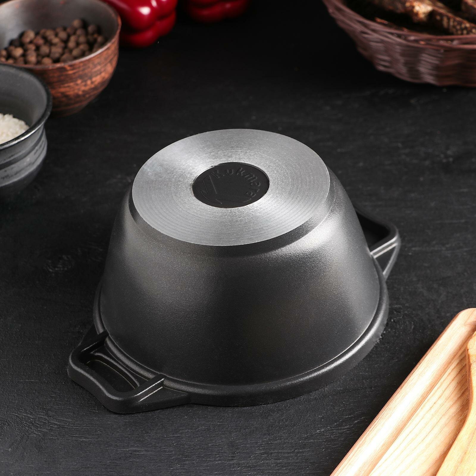 Кастрюля KUKMARA «Традиция», 4 л, 32×26.5×14.3 см, антипригарное покрытие, литой алюминий, чёрная