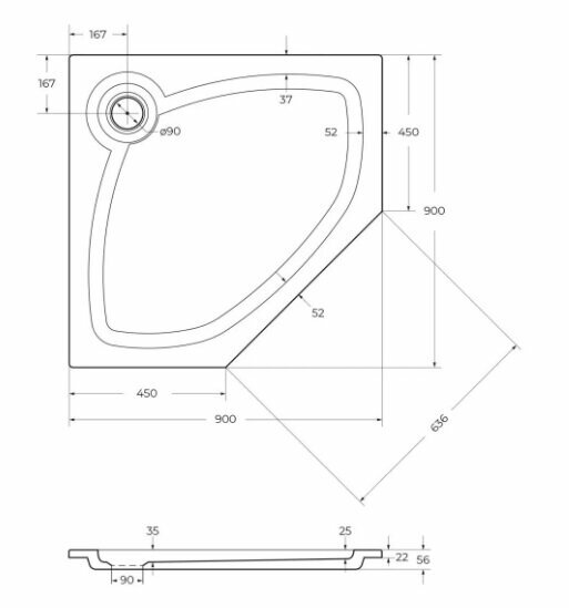 Поддон для душа Cezares TRAY-S-P-90-56-W 90х90