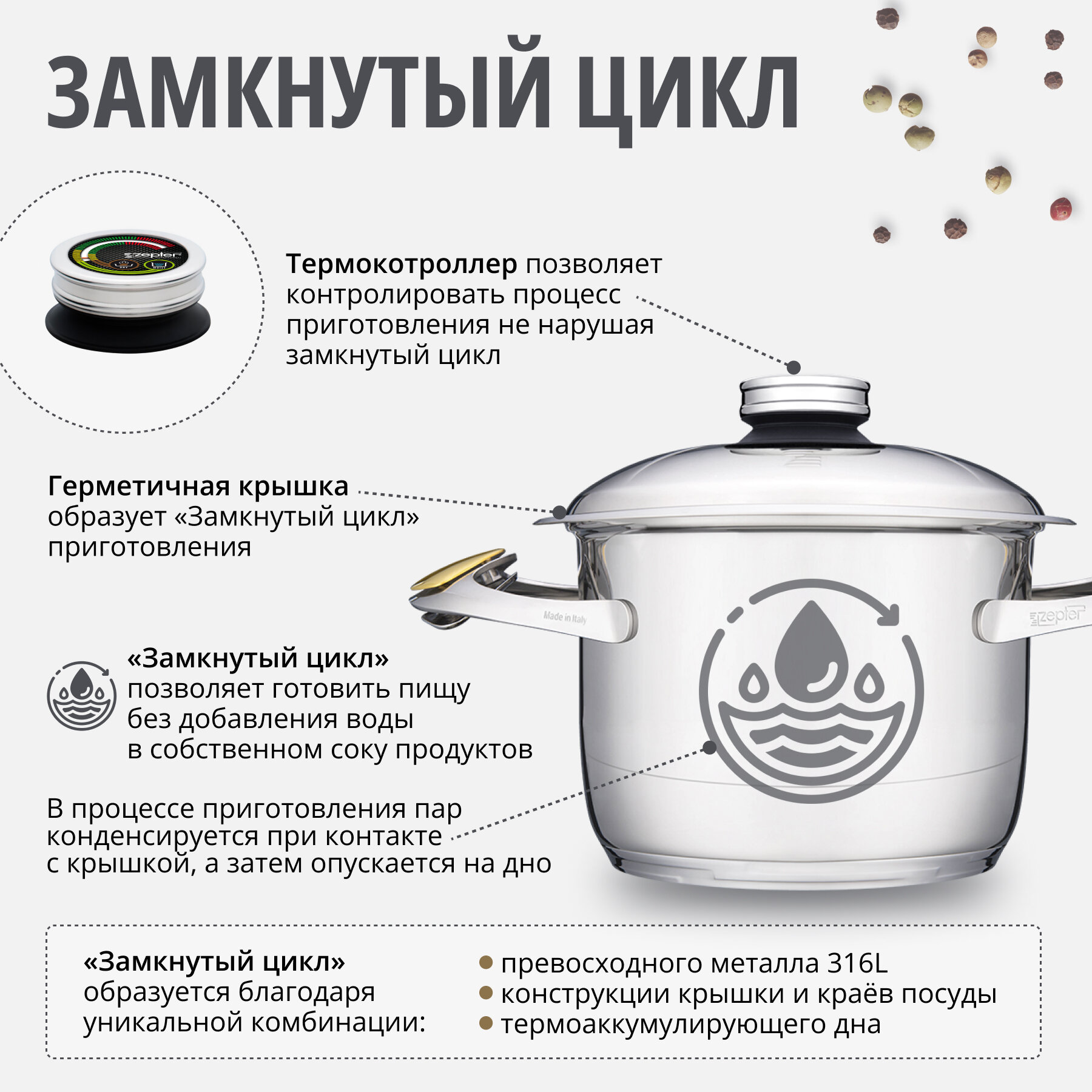 Кастрюля 9 л ZEPTER из нержавеющей стали, D24 см, высота 20,3 см