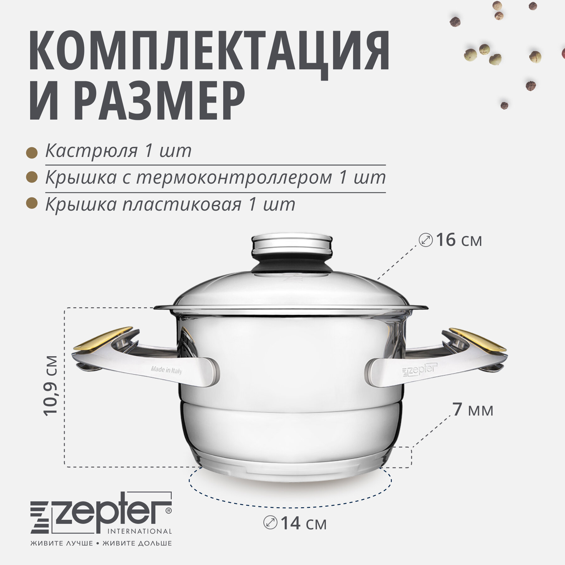 Кастрюля Zepter 2 литра, с крышкой с термоконтроллером, диаметр 16 см.