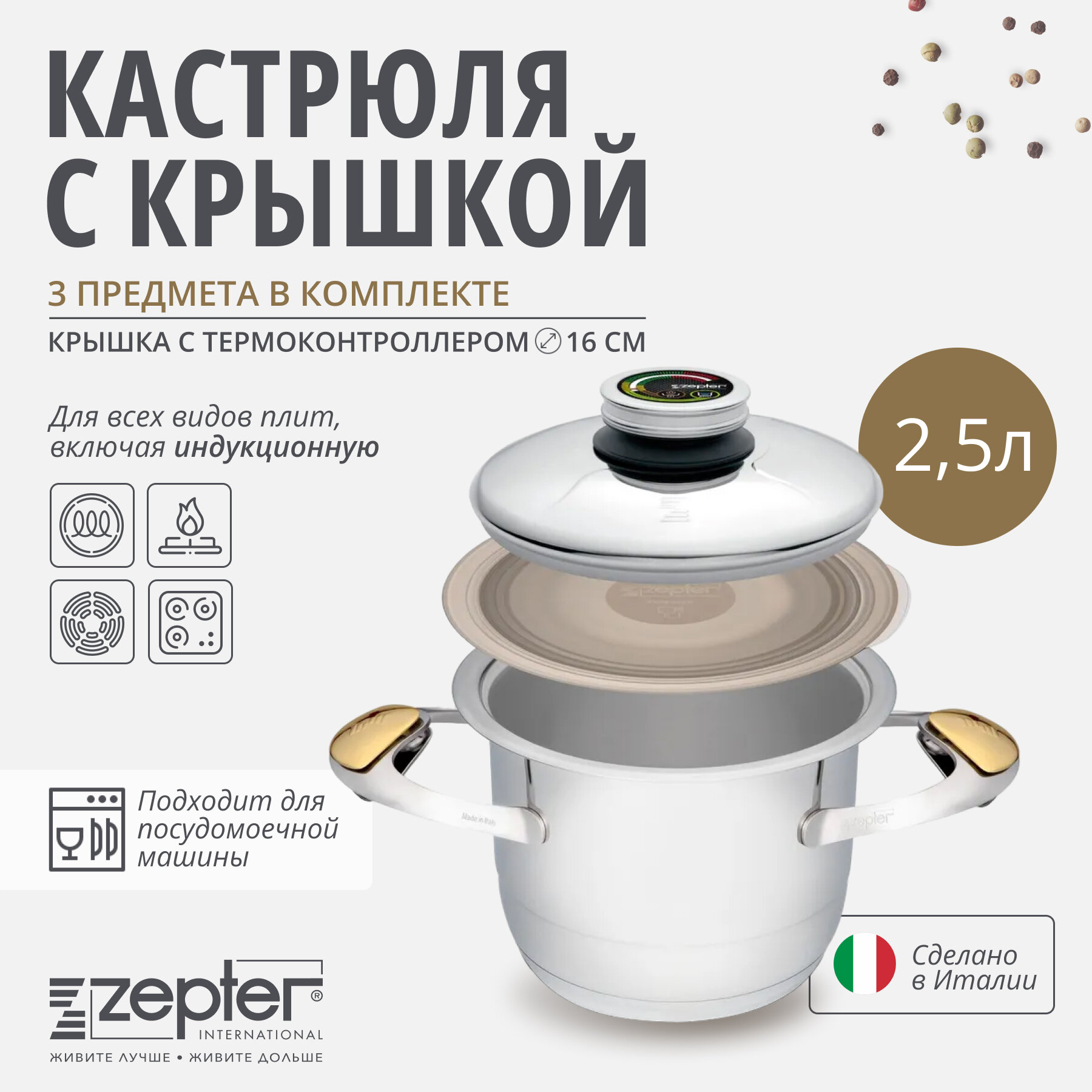 Купить Кастрюля Zepter с крышкой из нержавеющей стали на 2,5л/ 16см