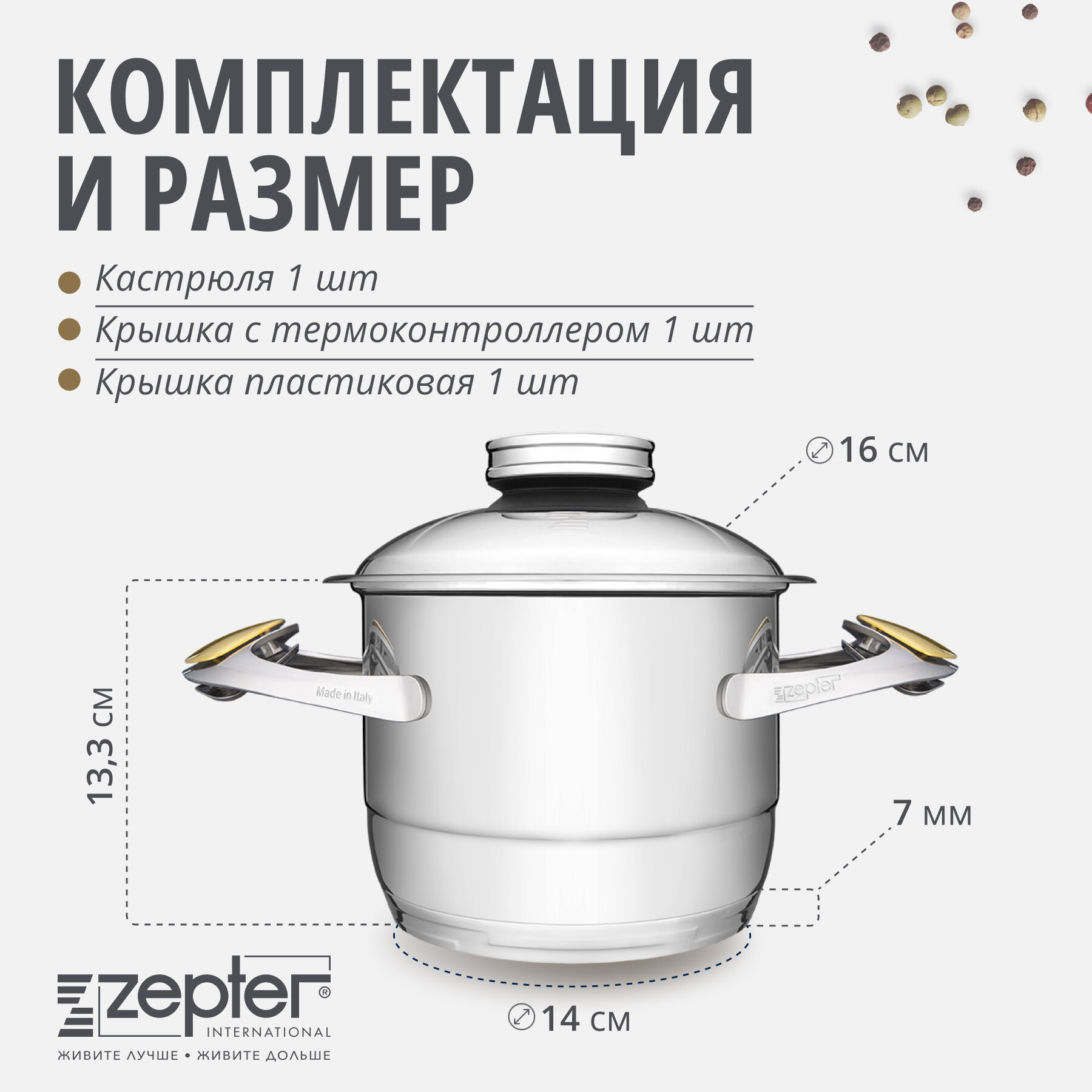 Кастрюля Zepter 2 литра, с крышкой с термоконтроллером, диаметр 16 см.