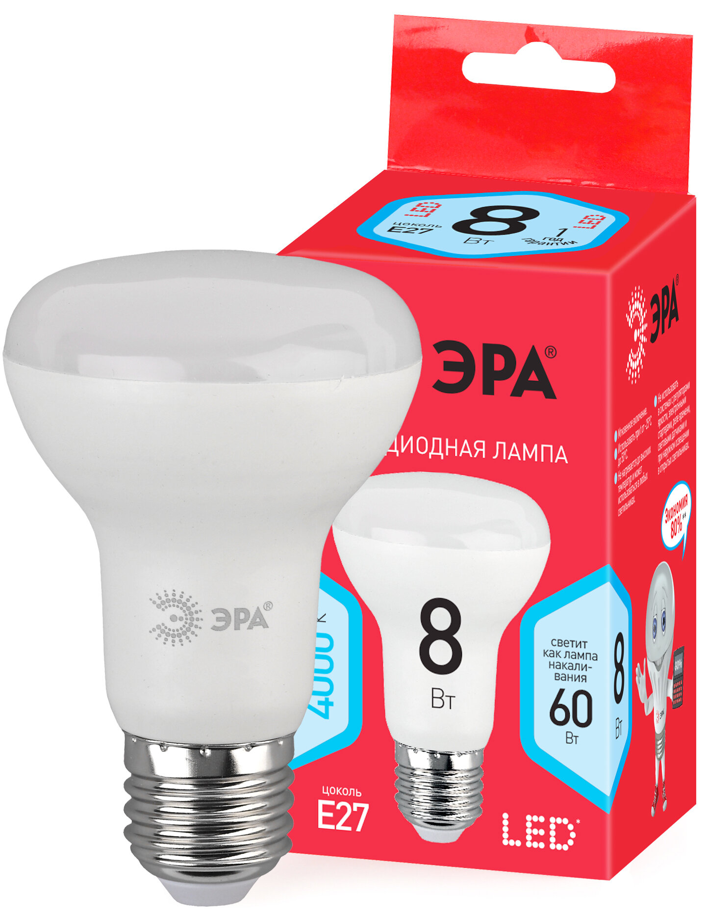 Лампа светодиодная ЭРА smd R63-8w-840-E27_eco