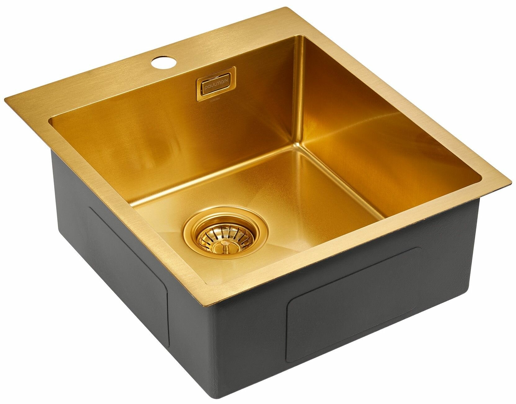 Мойка для кухни из нержавеющей стали AISI 304 Paulmark NECKAR, 450х510 мм, PVD и шумопоглащающее покрытие, отверстие под смеситель, универсальный монтаж, цвет брашированное золото, PM804551-BG