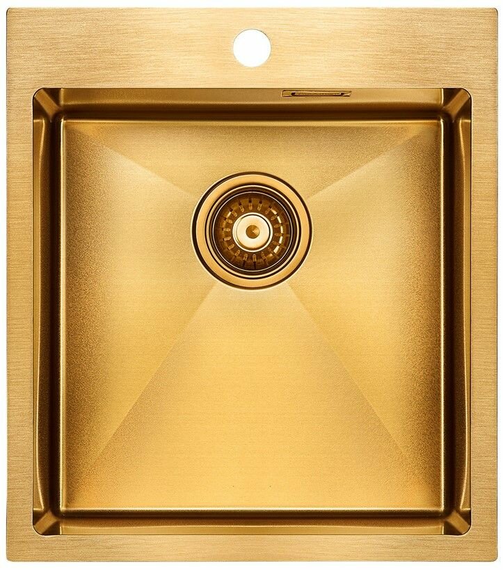 Мойка для кухни из нержавеющей стали AISI304 Paulmark VELTEN 45, 450х510 мм, PVD и шумопоглащающее покрытие, отверстие под смеситель, универсальный монтаж, цвет брашированное золото