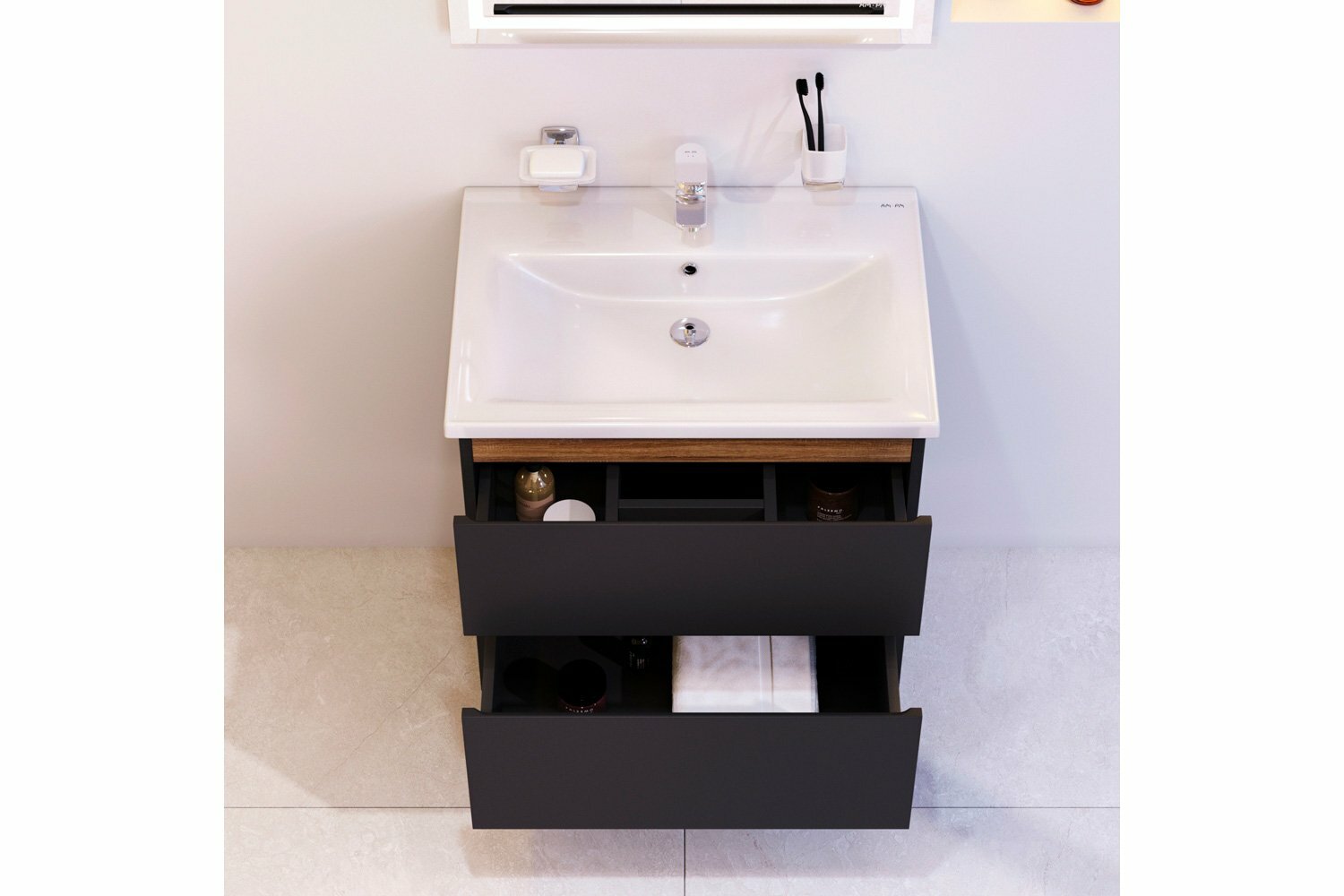Тумба под раковину AM.PM X-Joy M85AFHX0652BM черная, подвесная, 65 см, 2 ящика