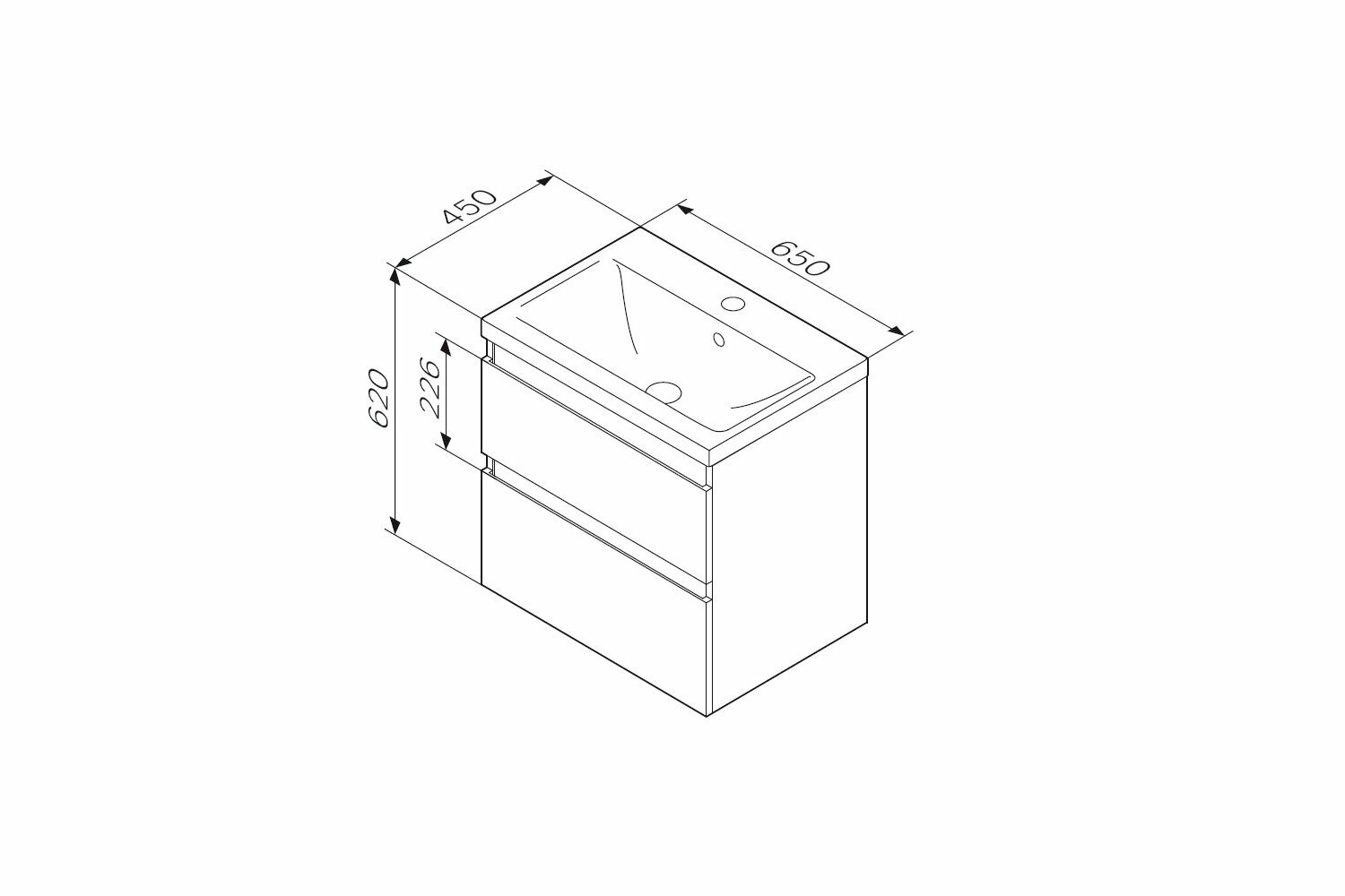 M85AFHX0652BM X-Joy, База под раковину, подвесная, 65 см, 2 ящика, черный матовый