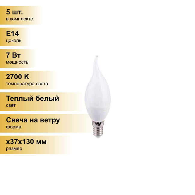 Сохранить(5 шт.) Светодиодная лампочка Ecola свеча на ветру E14 7W 2700K 2K 130x37 пласт./алюм. Premium C4SW70ELC Теплый белый. Цоколь E14 интересное: