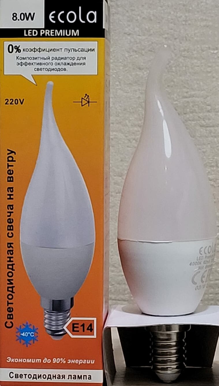 Ниже Вы можете прочитать отзывы на Ecola свеча на ветру E14 8W 4000K 4K 129x37 Premium C4PV80ELC, ознакомится с подробными характеристиками, посмотреть интересные обзоры и фотографии на Ecola свеча на ветру E14 8W 4000K 4K 129x37 Premium C4PV80ELC.