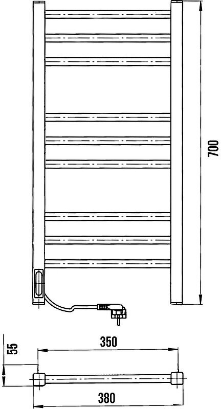 Полотенцесушитель электрический Laris Астор ЧКЧ9 350мм 700мм левое подключение RAL 9005 (черный матовый)