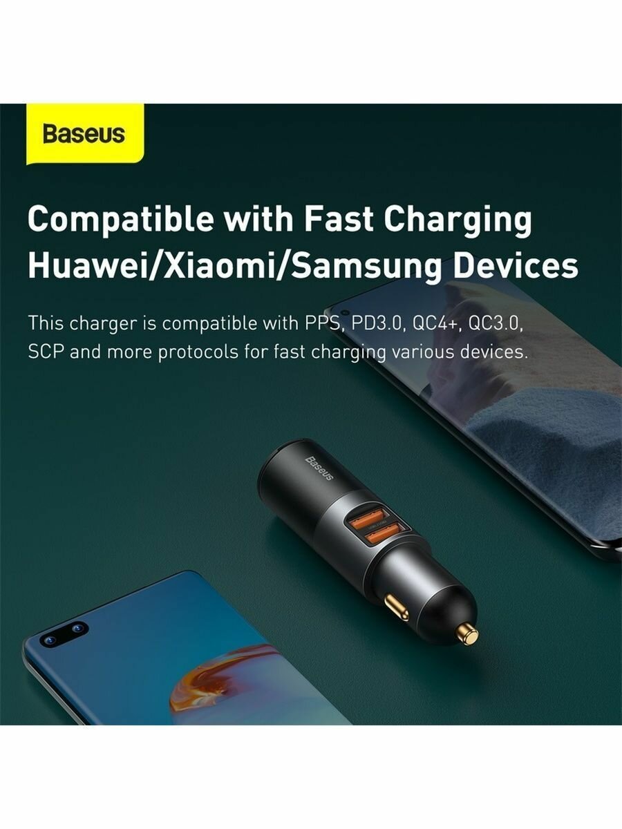 АЗУ Baseus Superme Digital Display PPS Dual Quick Charger Car Charger Black(with АЗУ Baseus Xiaobai series fast charging Cable Type-C to Type-C 100W(20V/5A) 1m Black)
