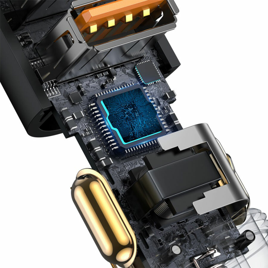 Автомобильное зарядное устройство Baseus Golden Contactor Pro U+C / Кабель USB - Type-C / Темно-серый