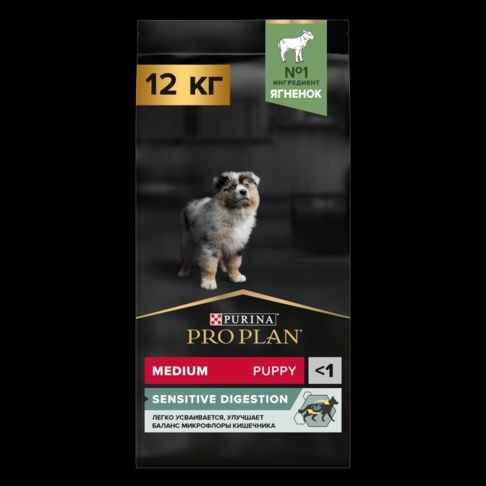 Сухой корм PRO PLAN® для щенков средних пород с чувствительным пищеварением, с высоким содержанием ягненка 12 кг