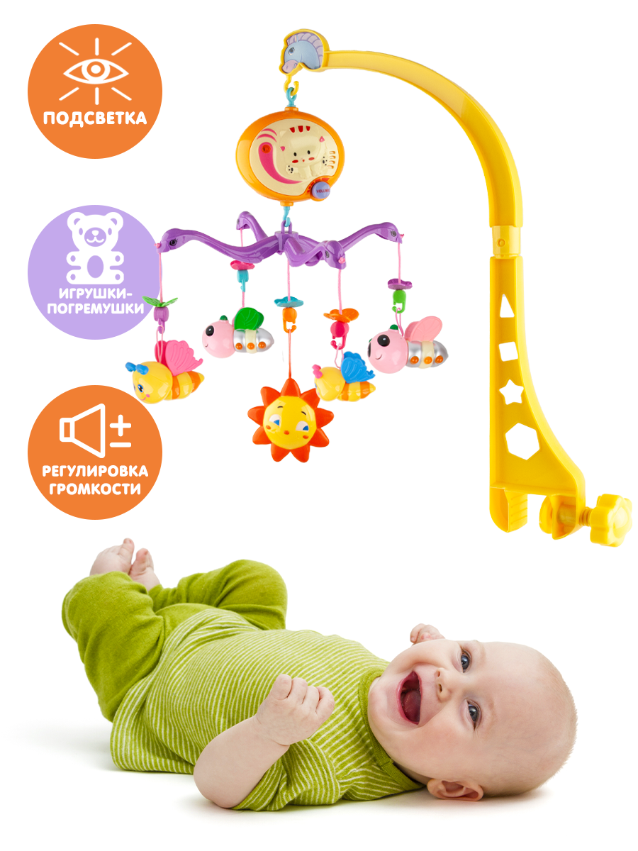 | Дополнительная информация | количество подвесных игрушек: 5; количество мелодий и звуков: 20; высота мобиля: 50 см; вес мобиля: 0.978 гр |