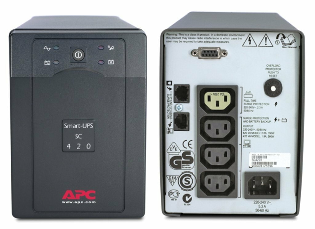 ИБП APC Smart-ups sc420i 260 вт/ 420 ва, 230v, 5 мин.(260вт) - 14 мин.(130вт), время зарядки 3 ч.