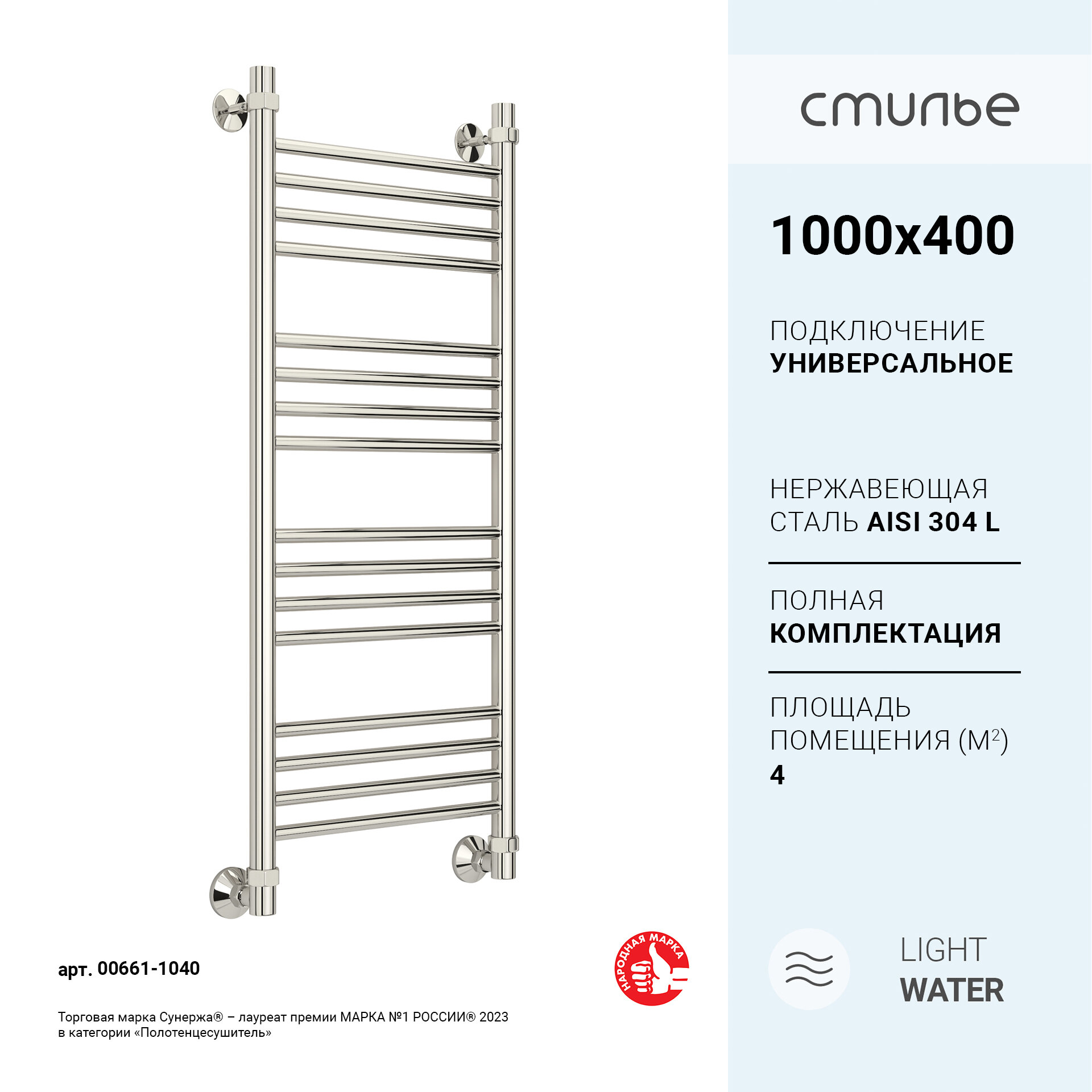 Полотенцесушитель водяной Стилье Аксиома-10, 1000x400, прямая, нержавеющая сталь 00661-1040