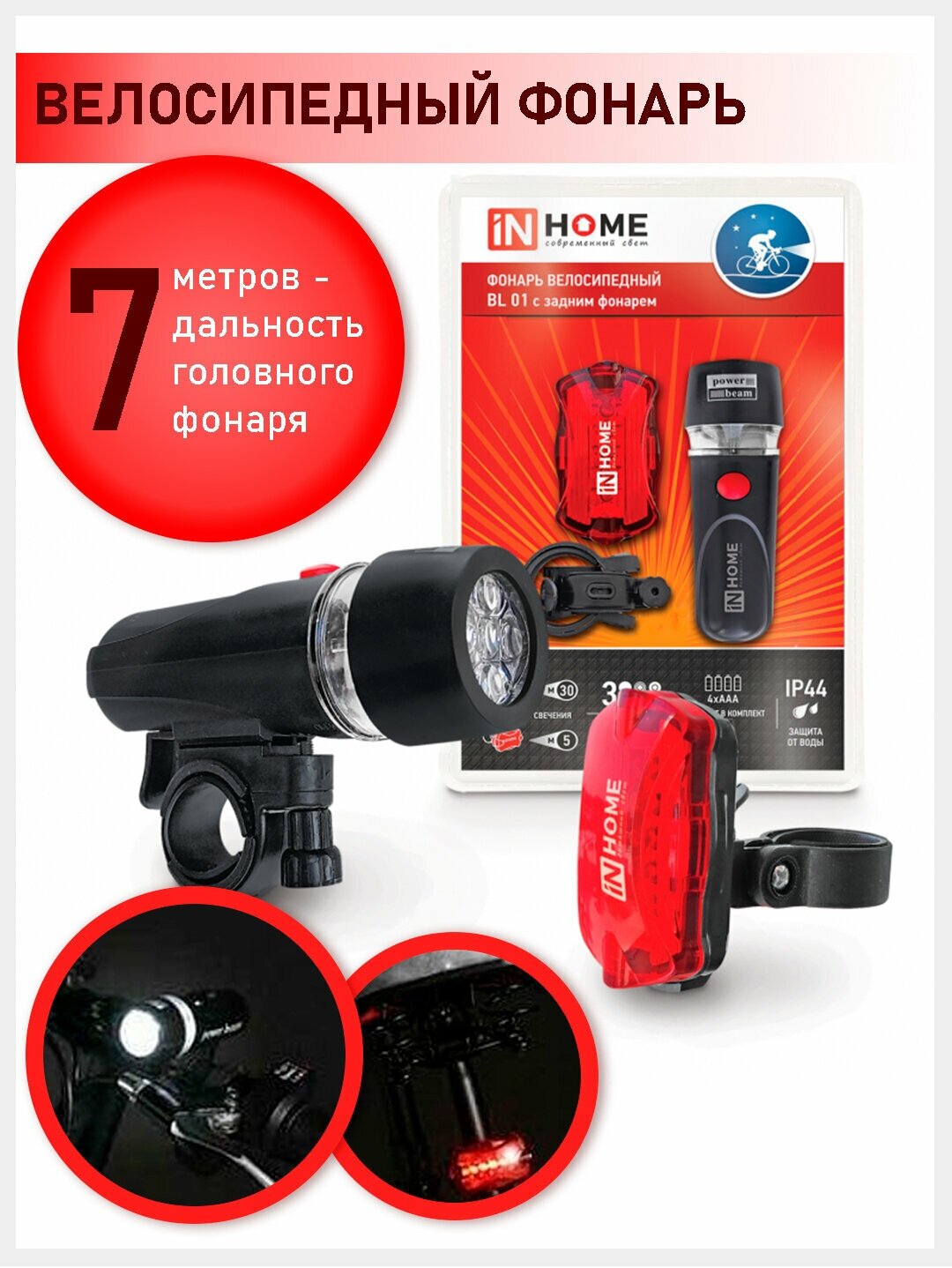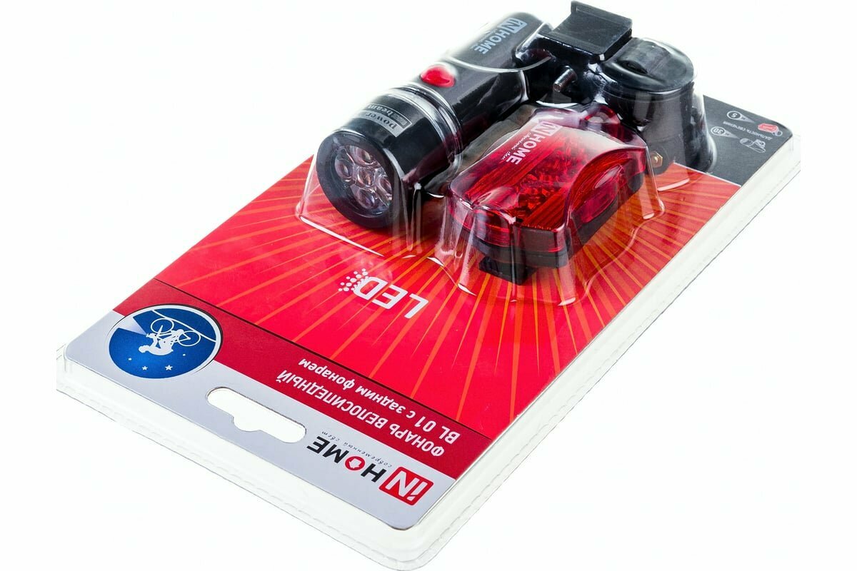 Велосипедный фонарь IN HOME BL 01 5LED с задним фонарем 4AAA 3 режима с кронштейном черный 4690612035192