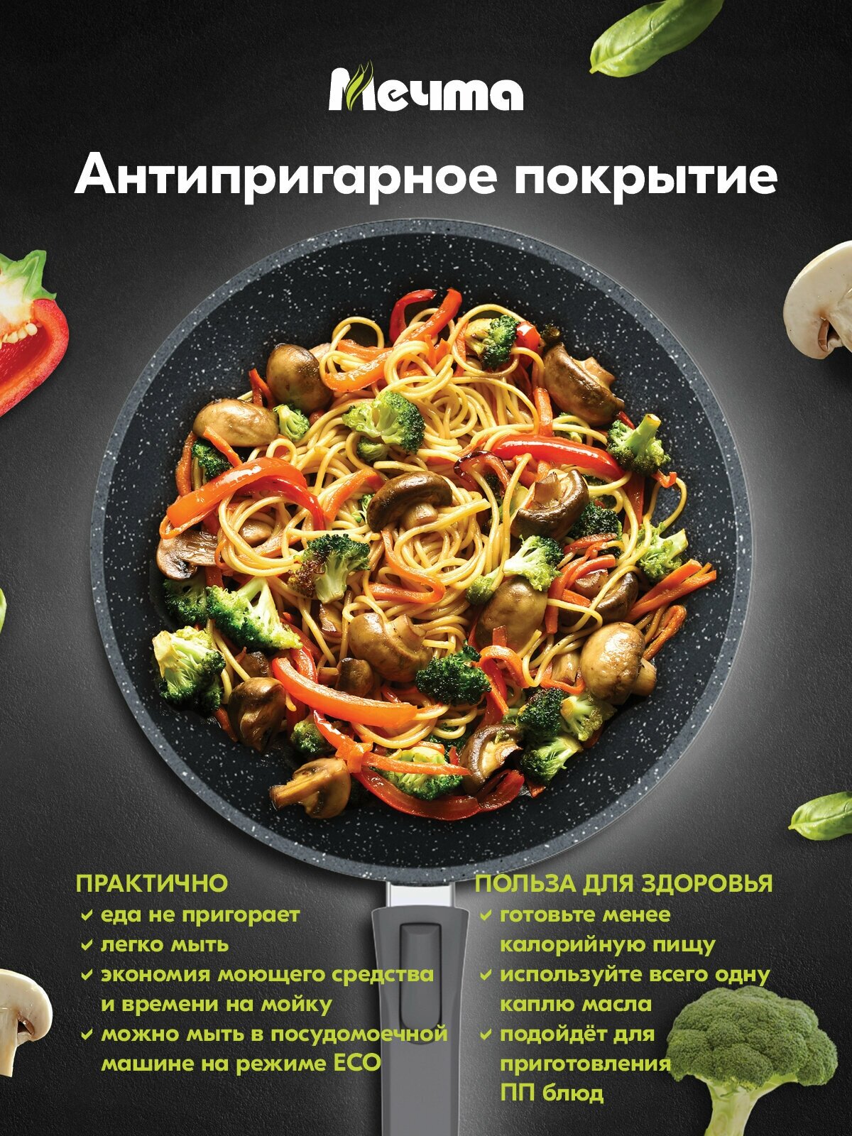 Мечта Сковорода "Гранит ВОК", d28 см, съёмная ручка, стеклянная крышка
