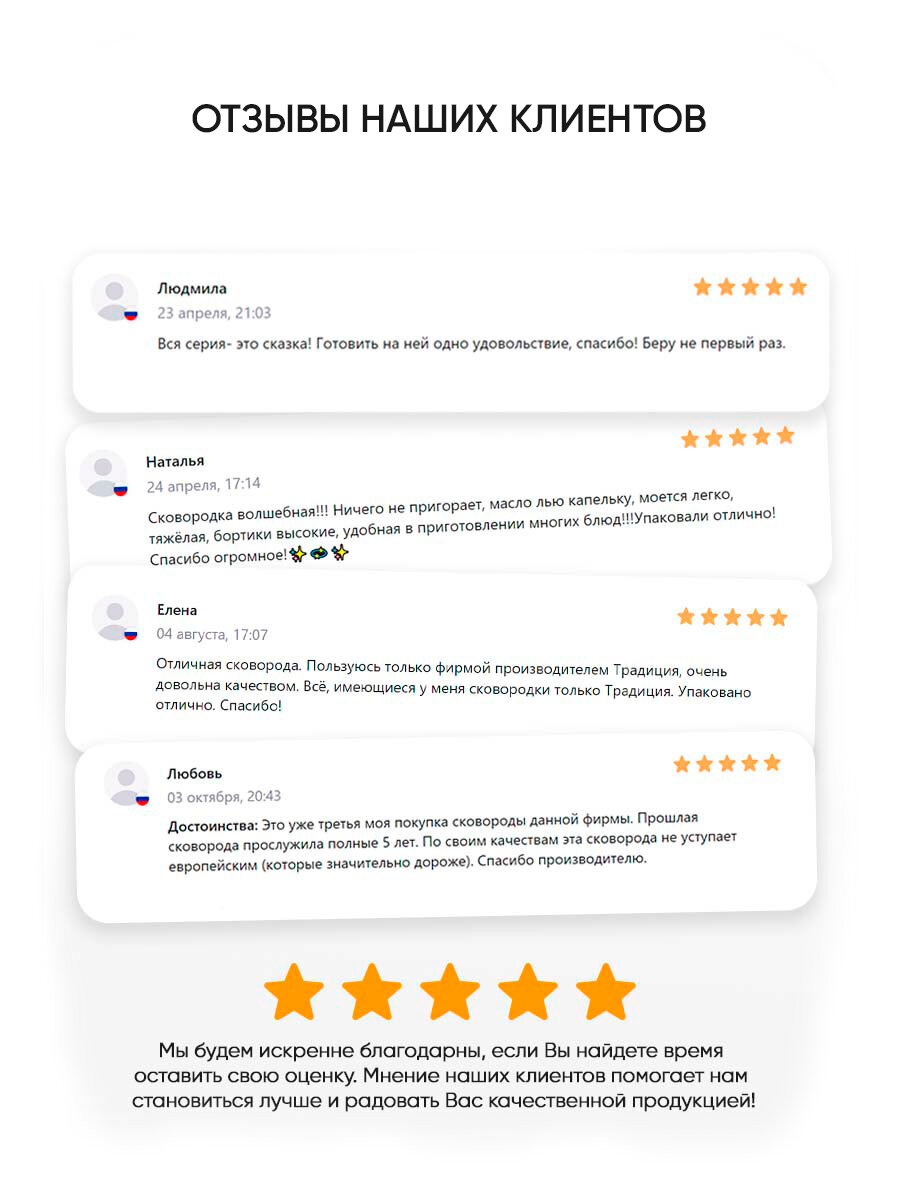 | Плюсы: | она великолепна! как и вся посуда Традиция |