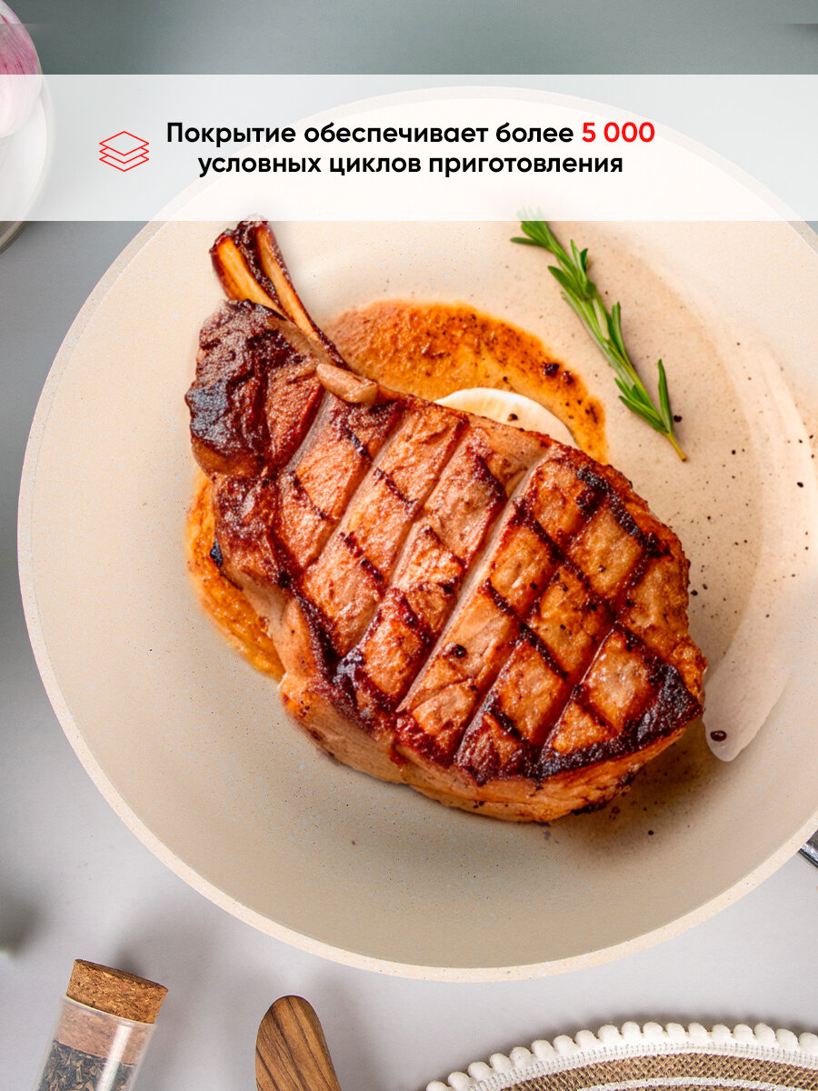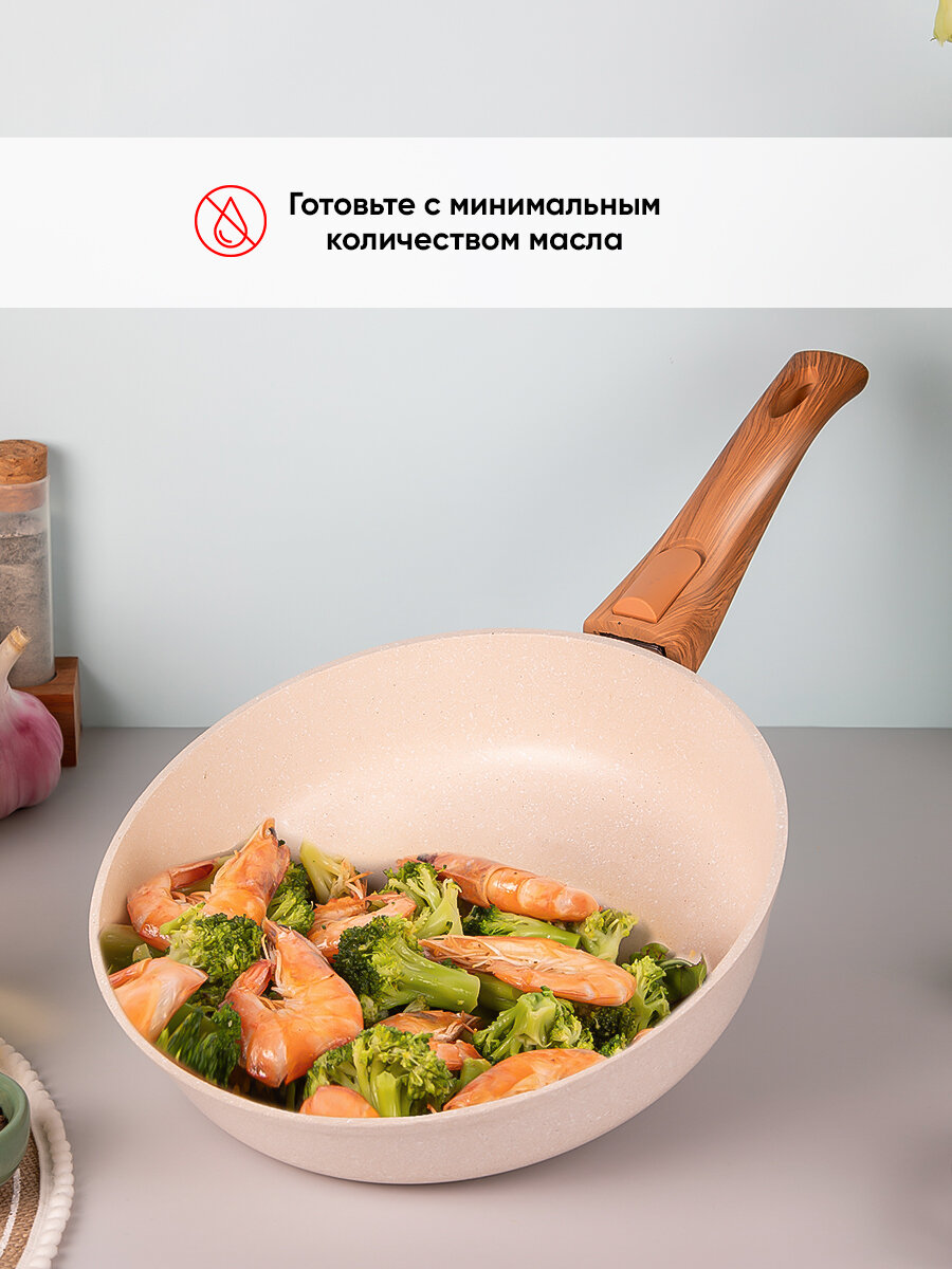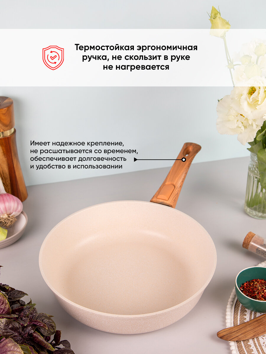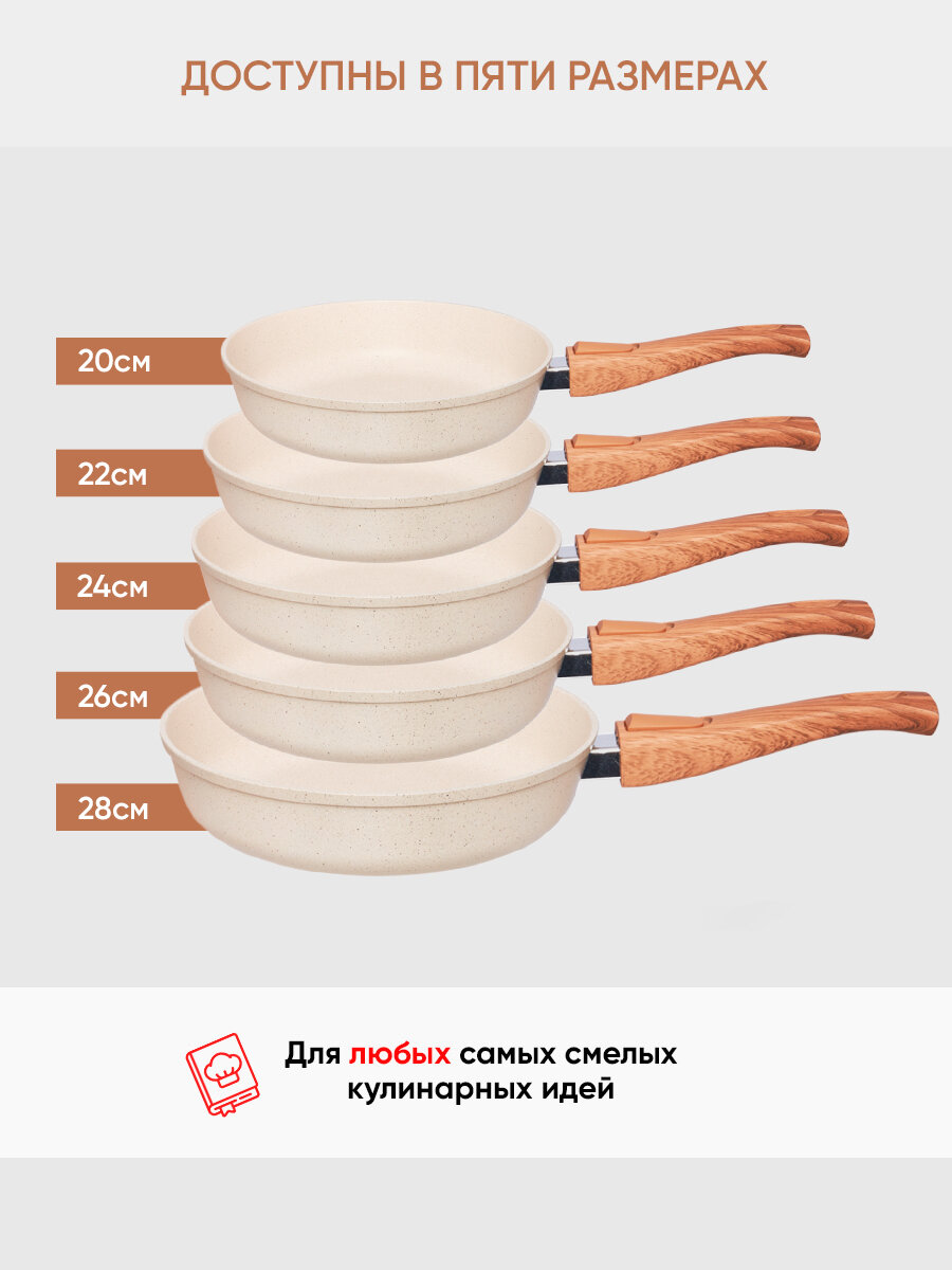 Сковорода антипригарная литая 28см со съемной ручкой Ваниль ТМ Традиция готовить с любовью