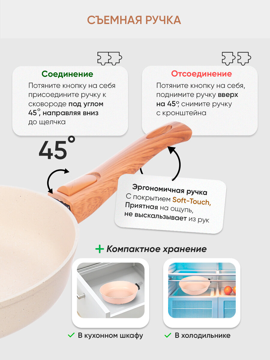 Сковорода Традиция Ваниль антипригарная, со съемной ручкой, 20 см