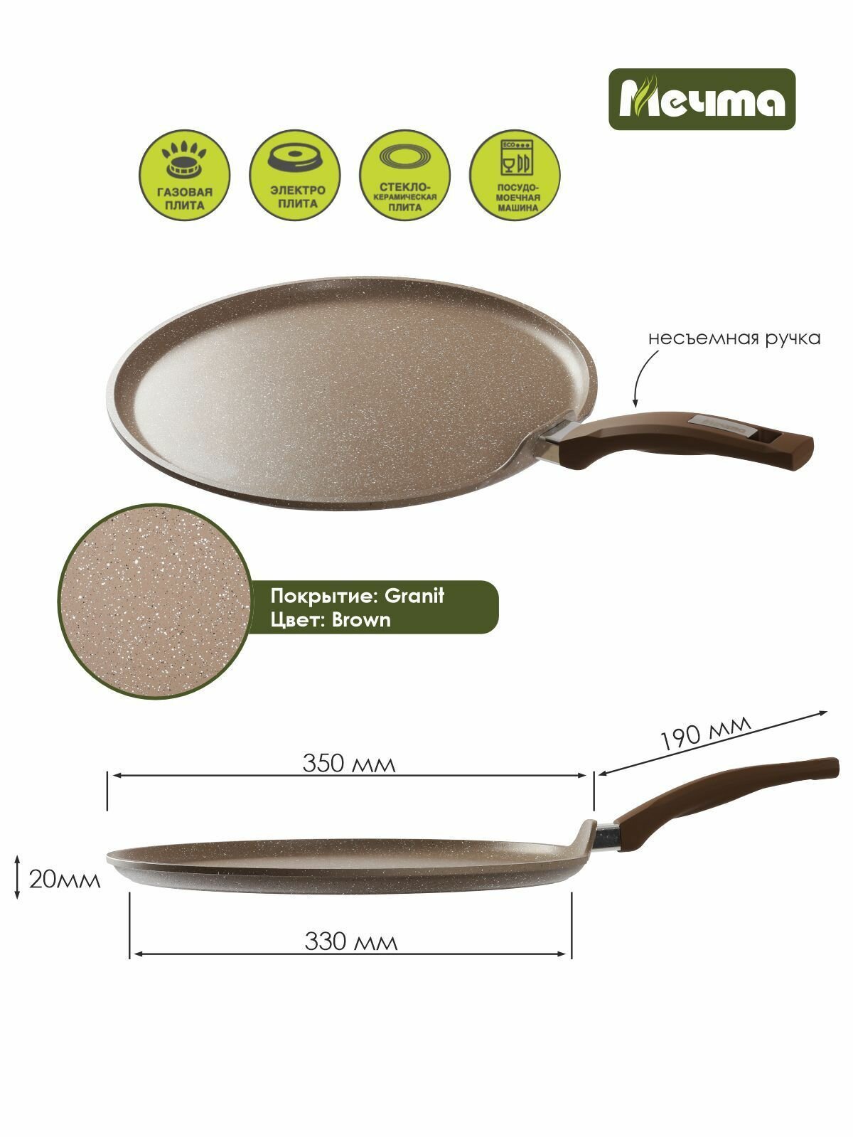 Сковорода "Мечта" «Гранит Brown», d=22 см, антипригарное покрытие, съёмная ручка, коричневый
