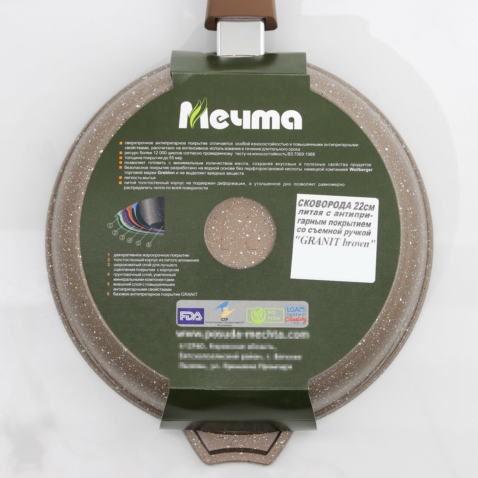 Сковорода со съемной ручкой Гранит brown, 18см