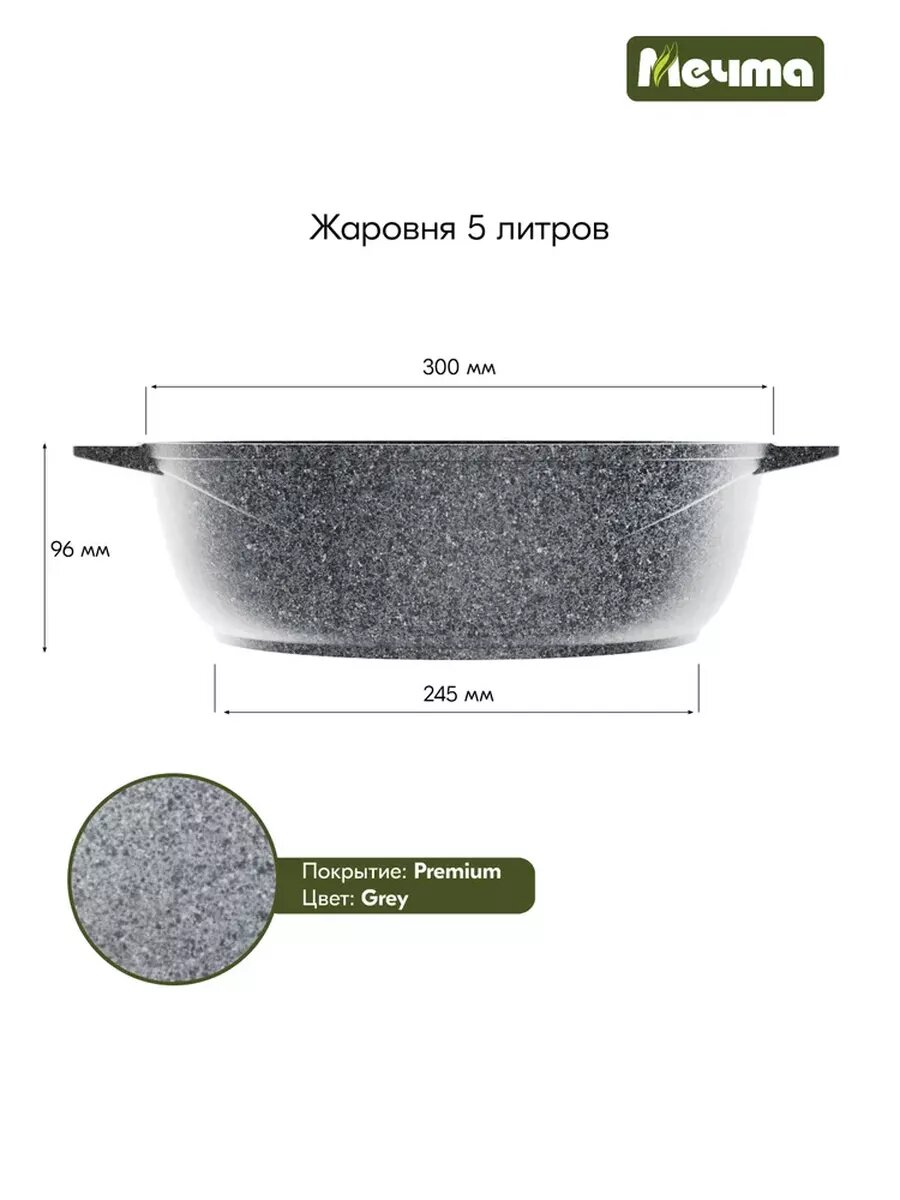 Жаровня мечта 6л антипригарное покрытие гранит Premium (grey) - 36901