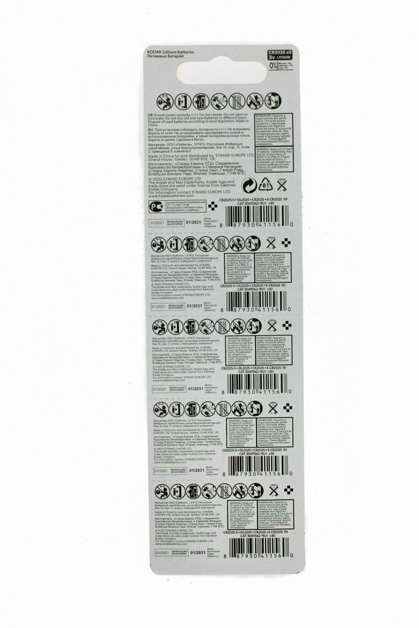 Батарейка Kodak CR2025 BL5 /Элемент питания Kodak CR2025 BL5, 1 шт.
